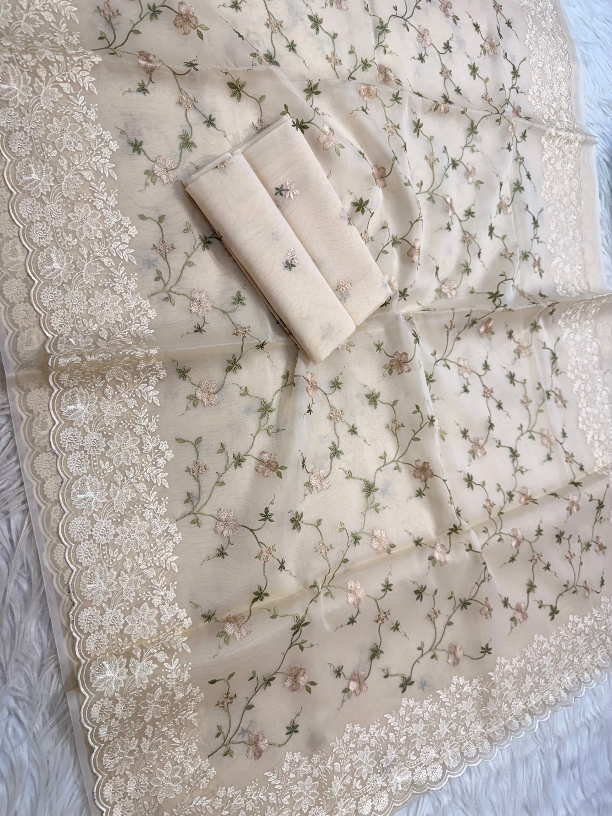 Off white shade kora organza cutwork embroidery Banarasi saree