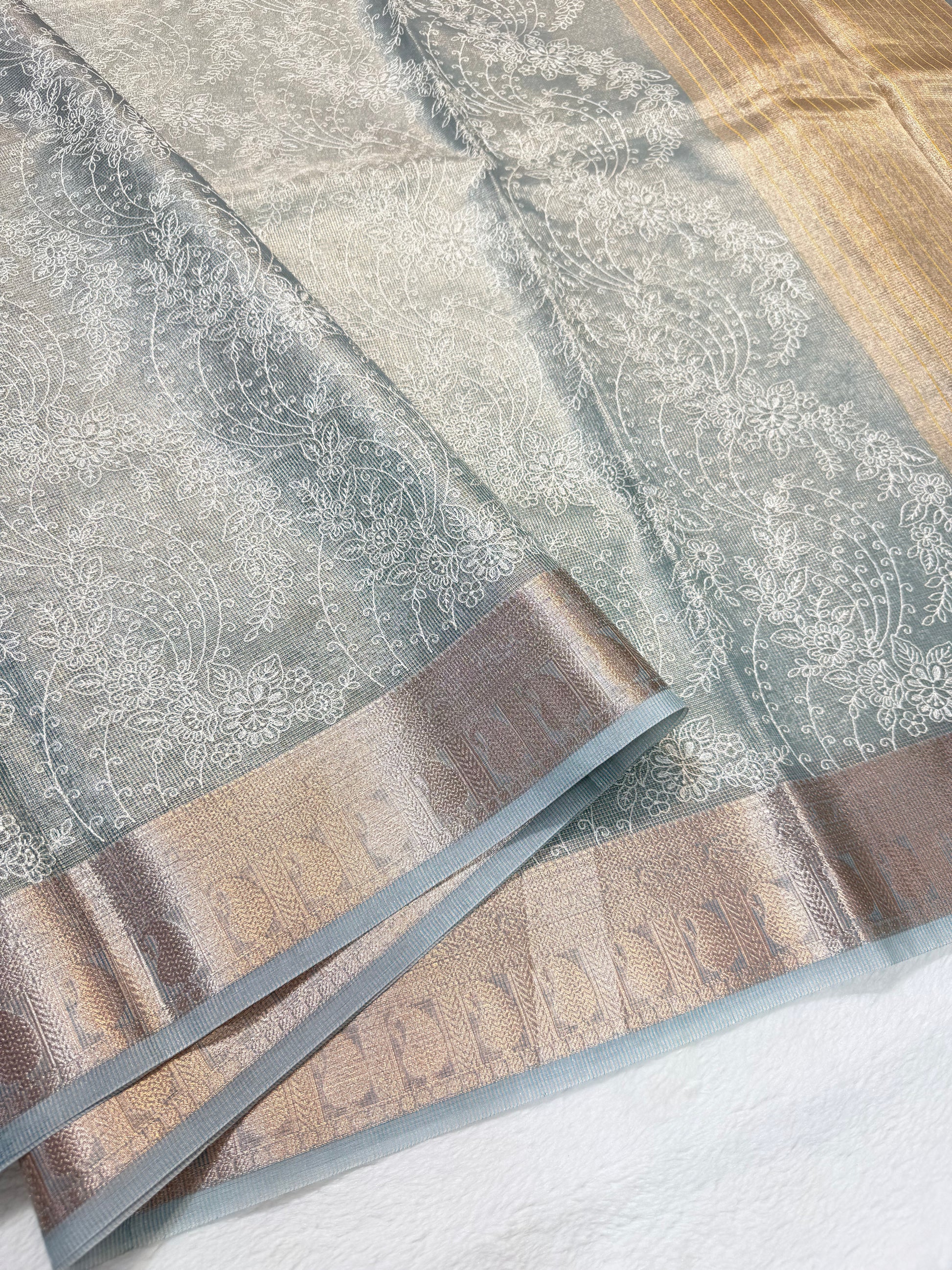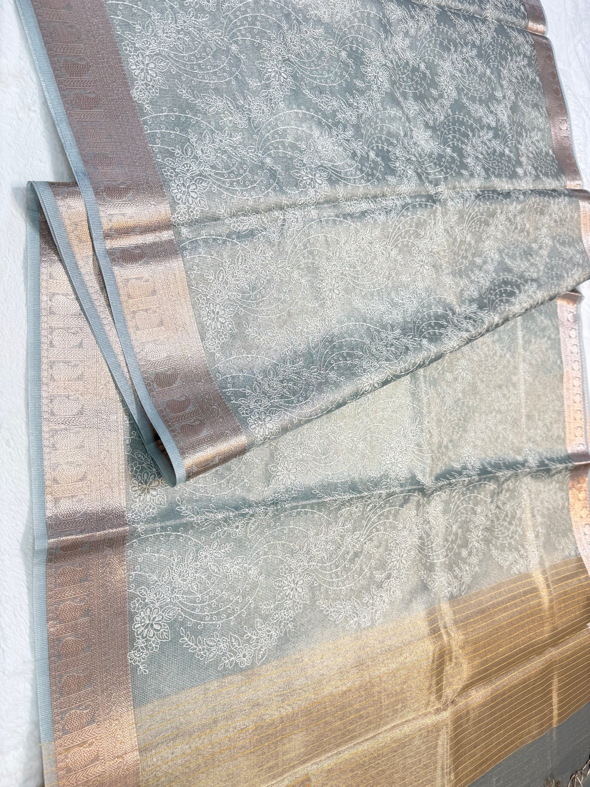Sea green shade tissue kota designer embroidery premium Banarasi saree