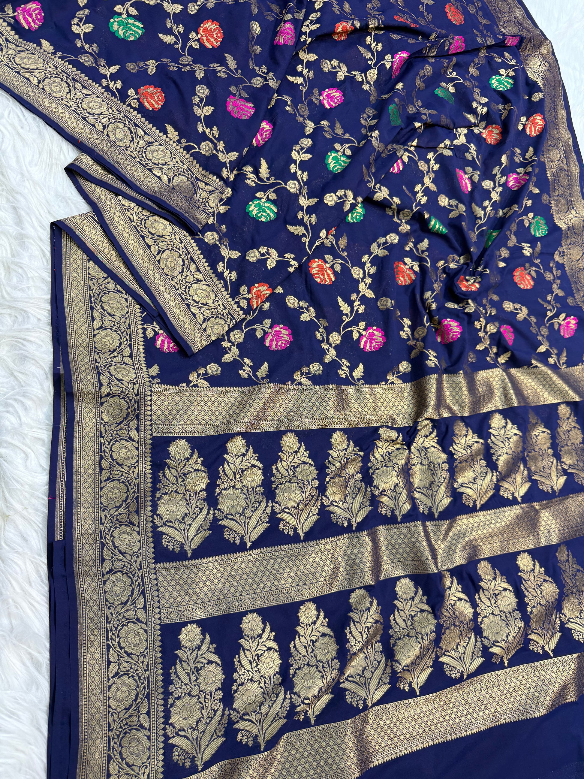 blue magenta shade khaddi georgatte premium Banarasi saree