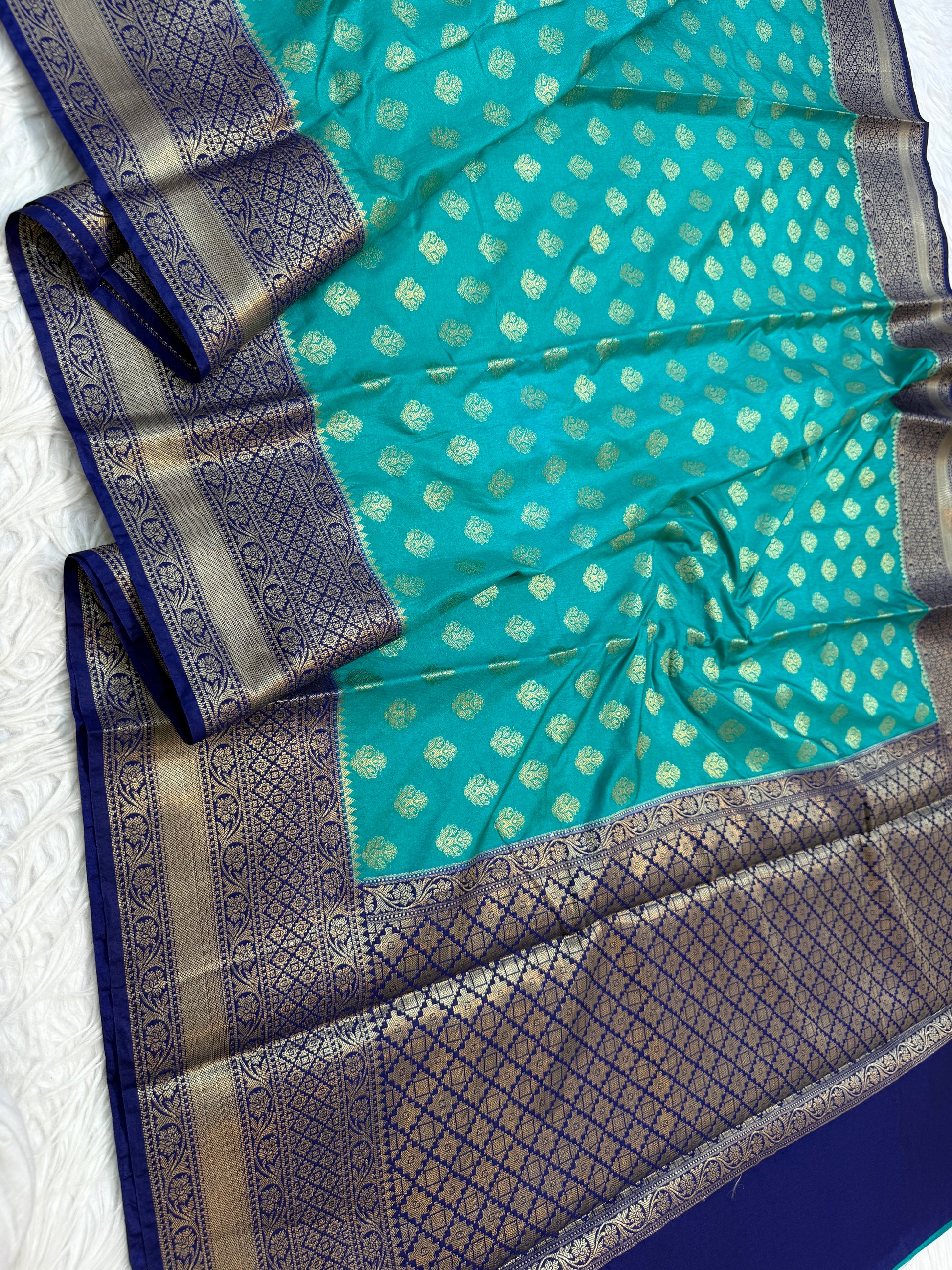 Sea green & blue shade Dupion Silk Banarasi Saree