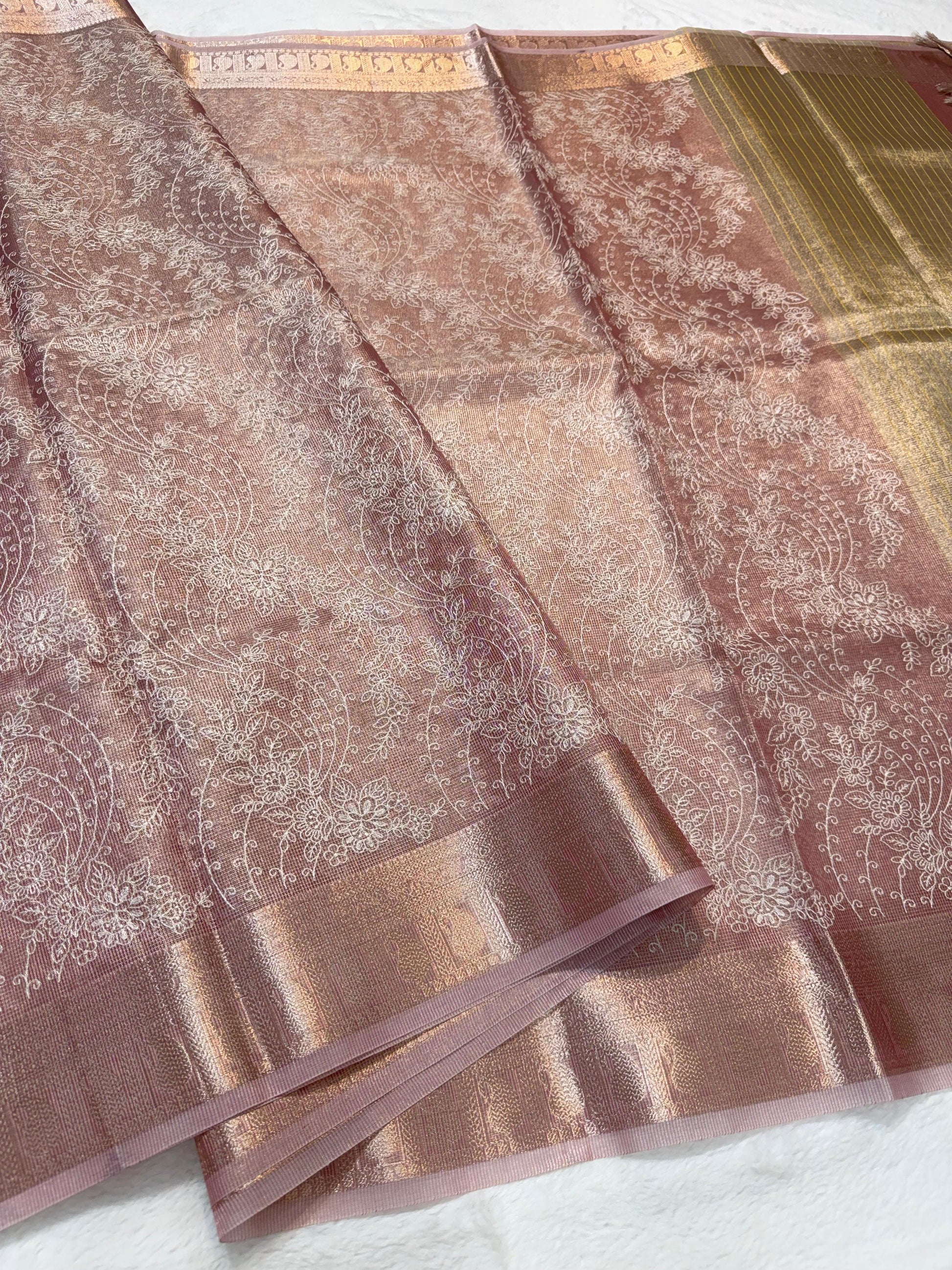 Rose gold shade tissue kota designer embroidery premium Banarasi saree