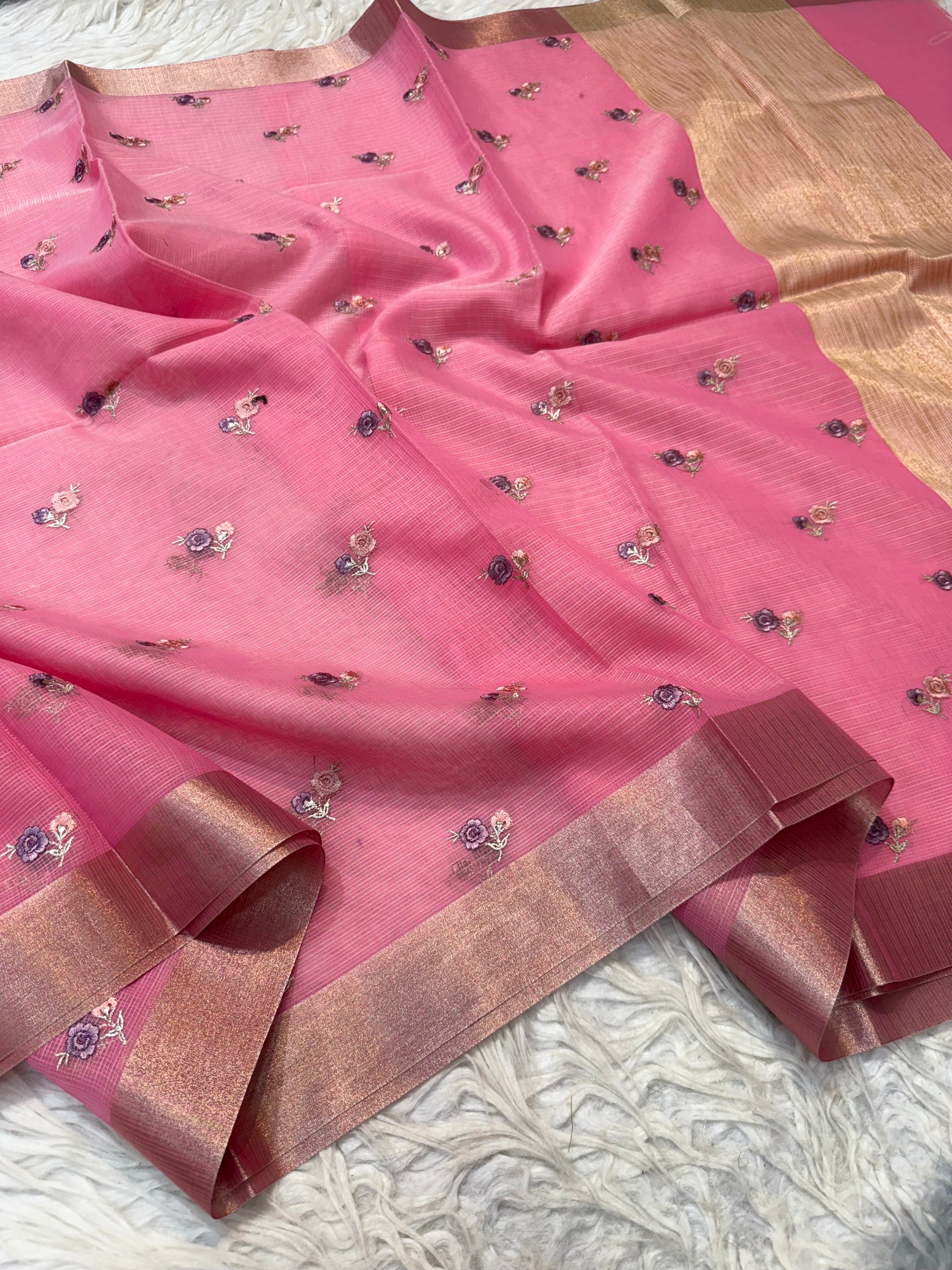 Pink shade cotton kota embroidery Banarasi sareeZSB822