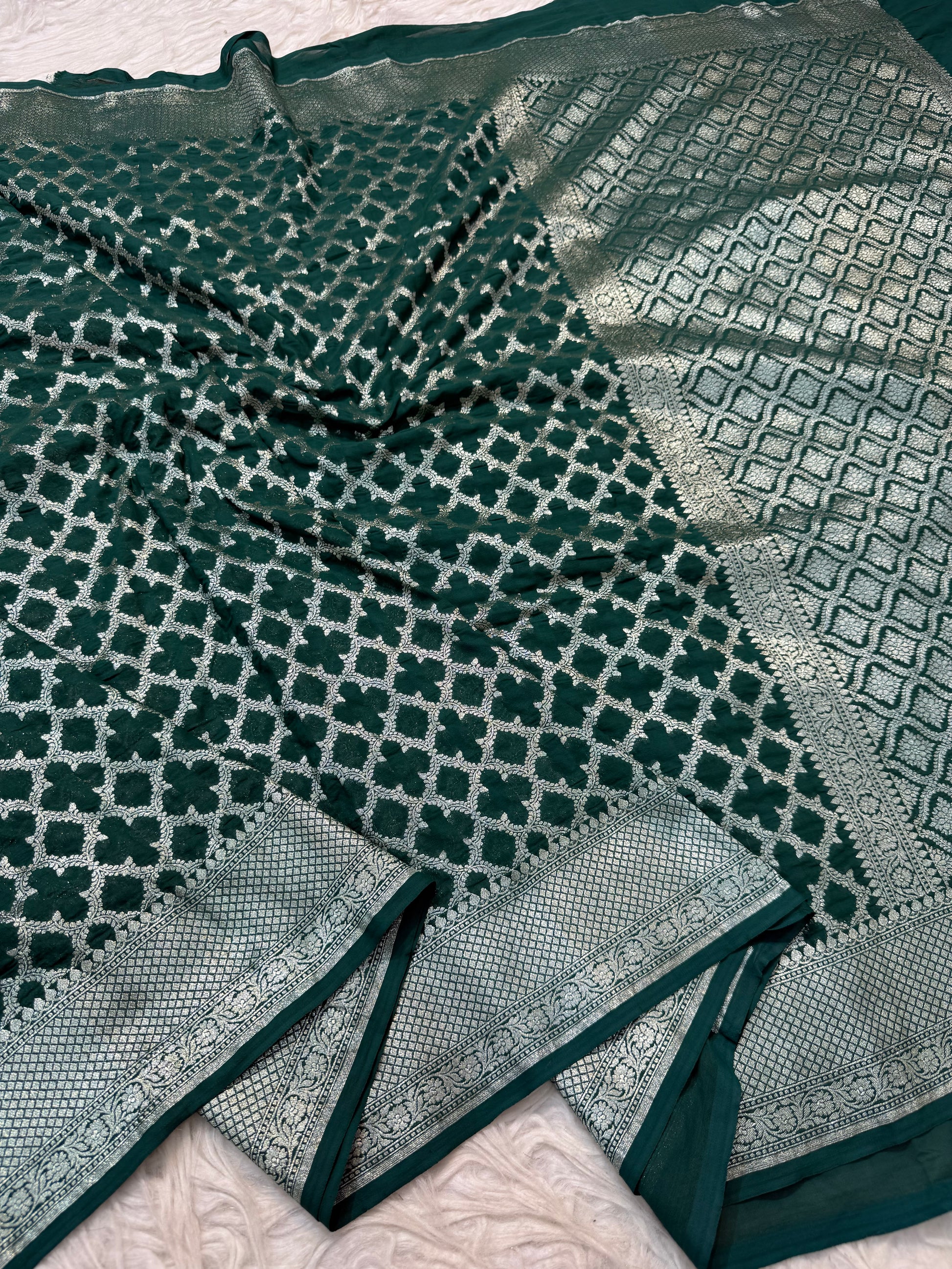 Bottle green shade khaddi georgatte premium Banarasi saree