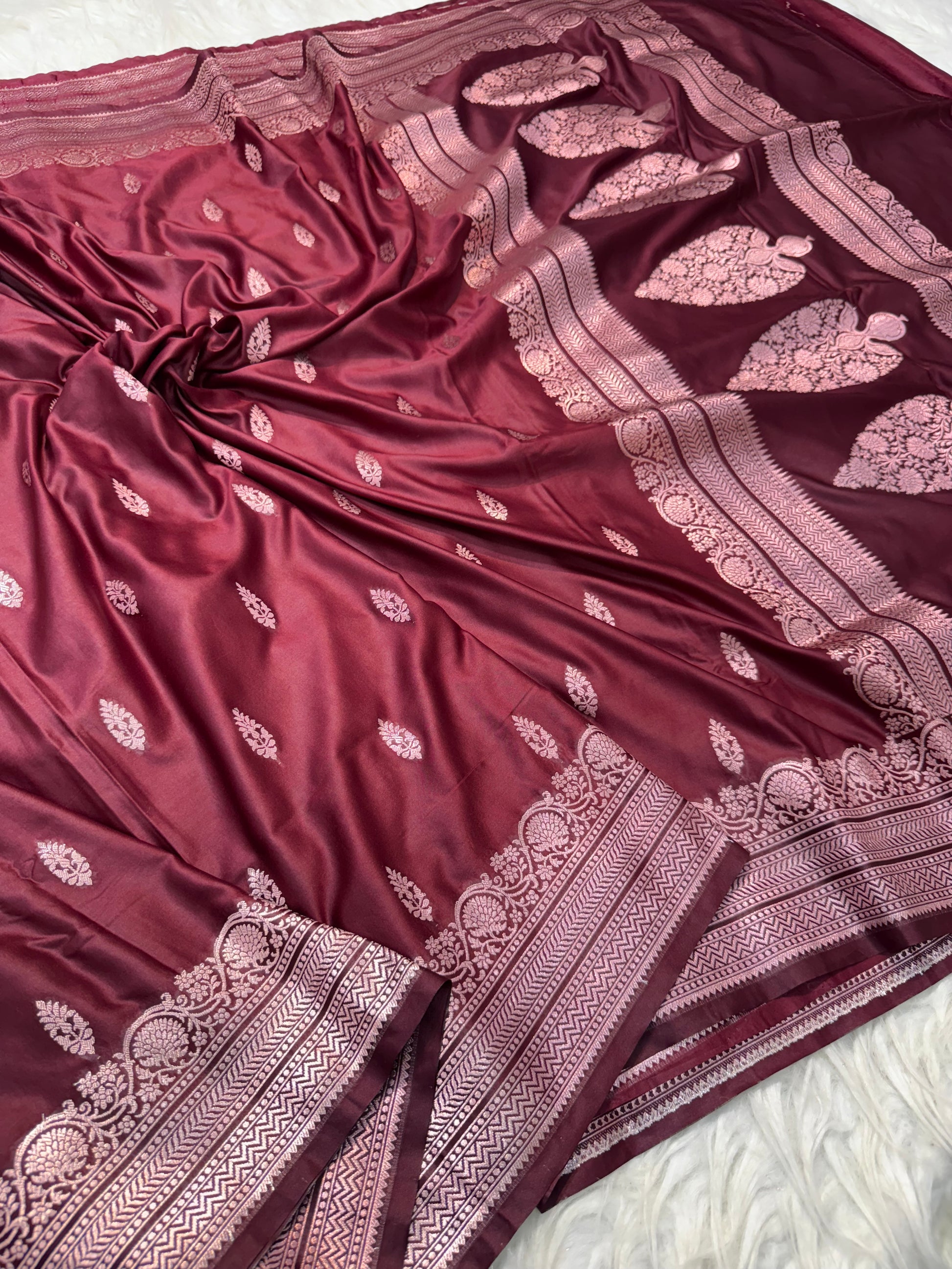 Discover the luxurious world of Zahera Silk Banaras with our Mashru Silk Banarasi Saree. Crafted from the finest Mashru Silk, this saree combines opulence with tradition. Adorn yourself with this exclusive piece and experience the elegance and grace of Banarasi artistry.