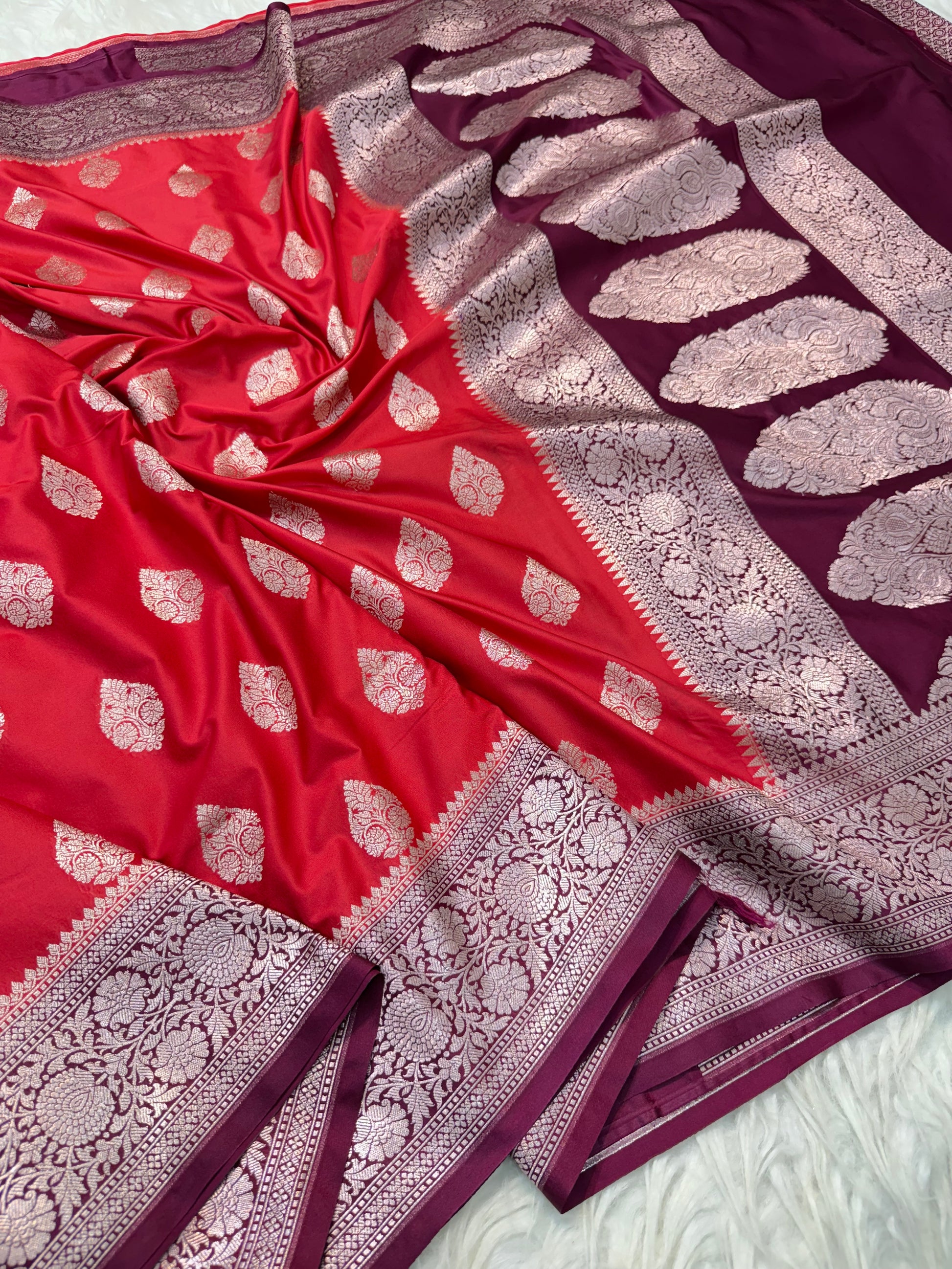 Red wine shade premium mashru katan Banarasi saree