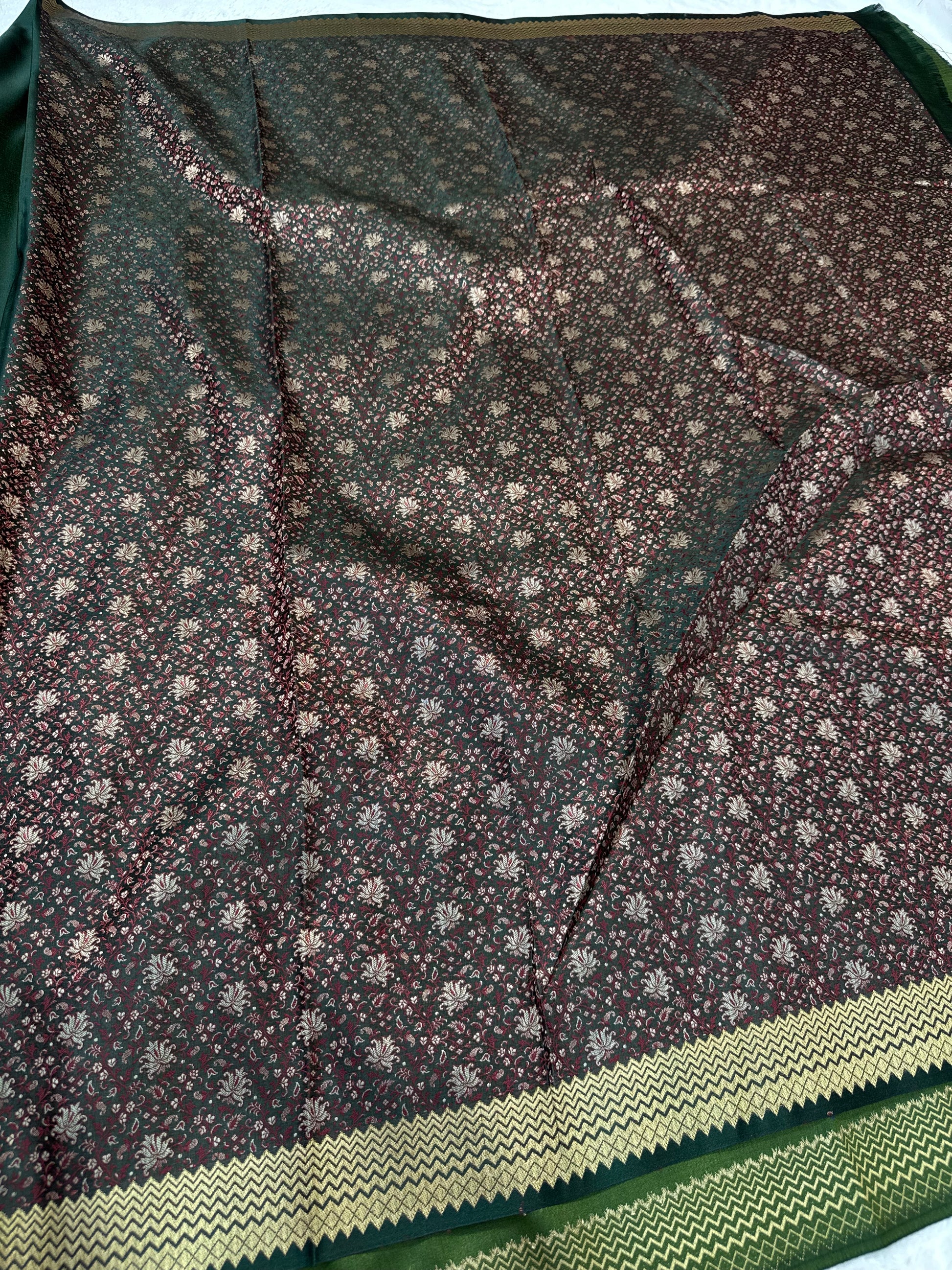 Bottle green shade mashru silk premium Banarasi silk Saree
