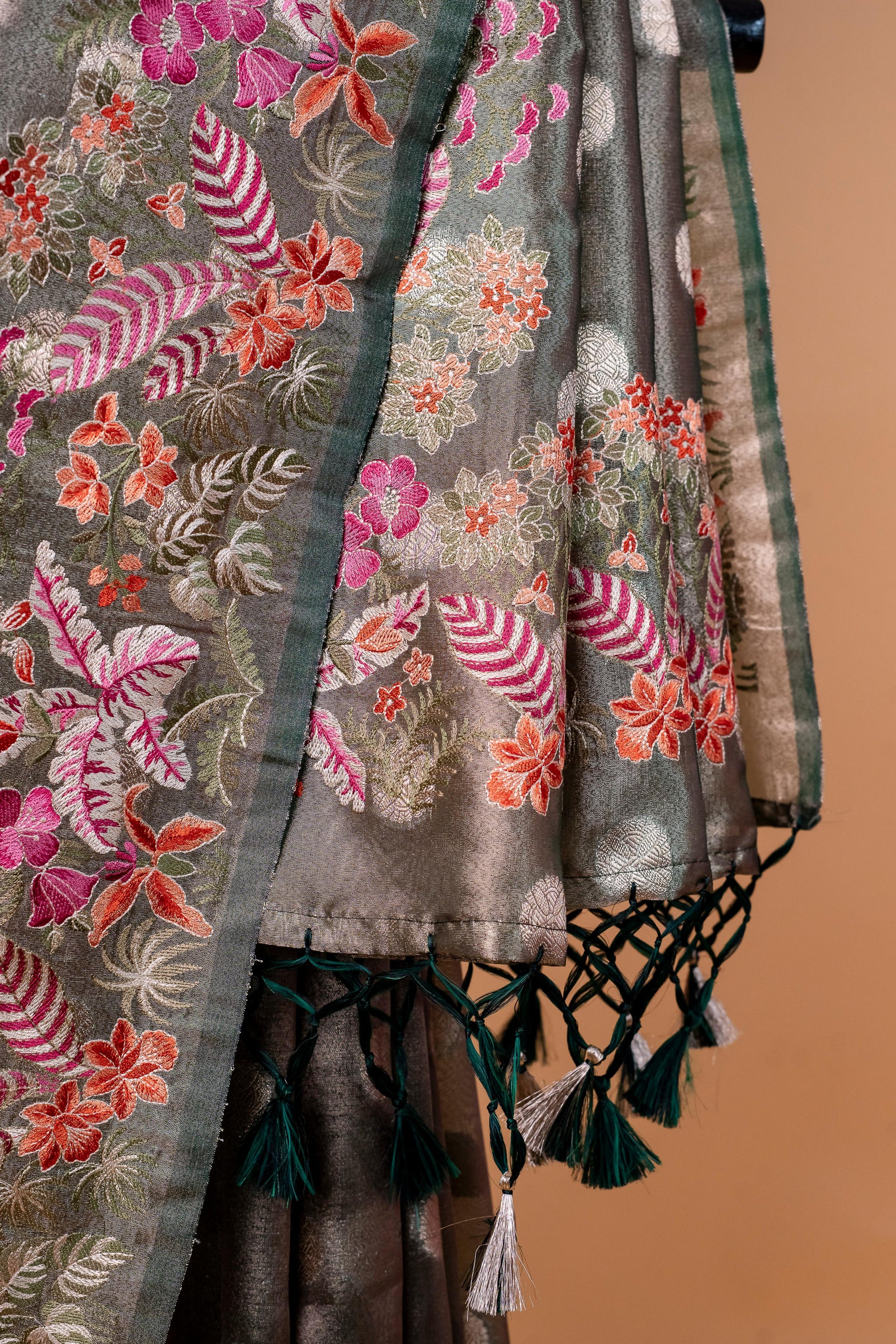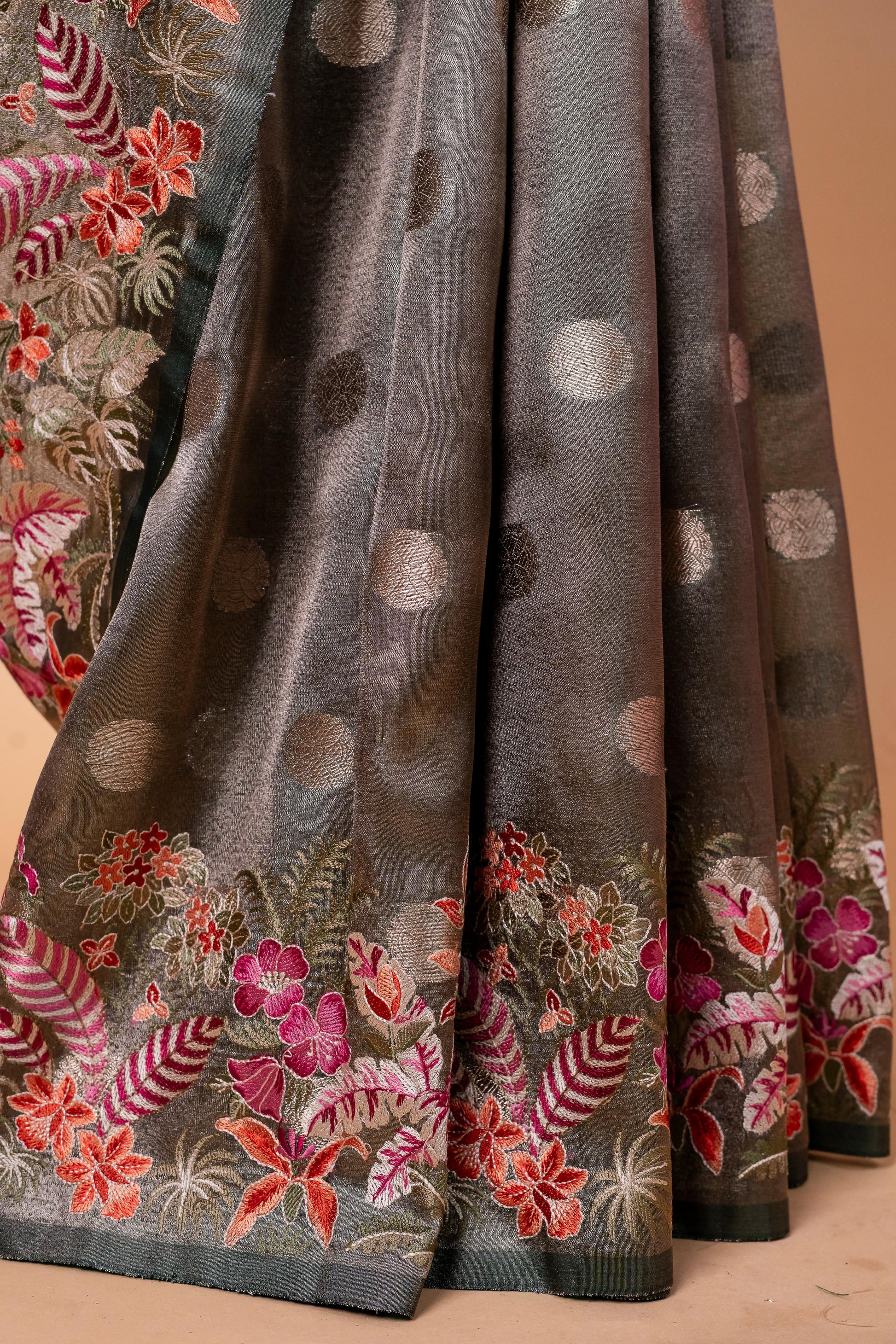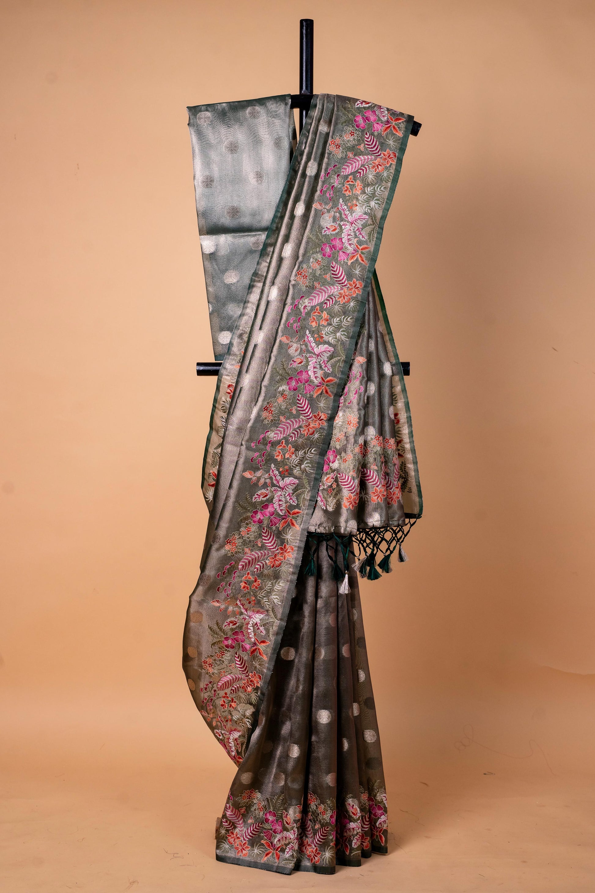 Bottle Tissue Designer Embroidery Premium Banarasi Saree