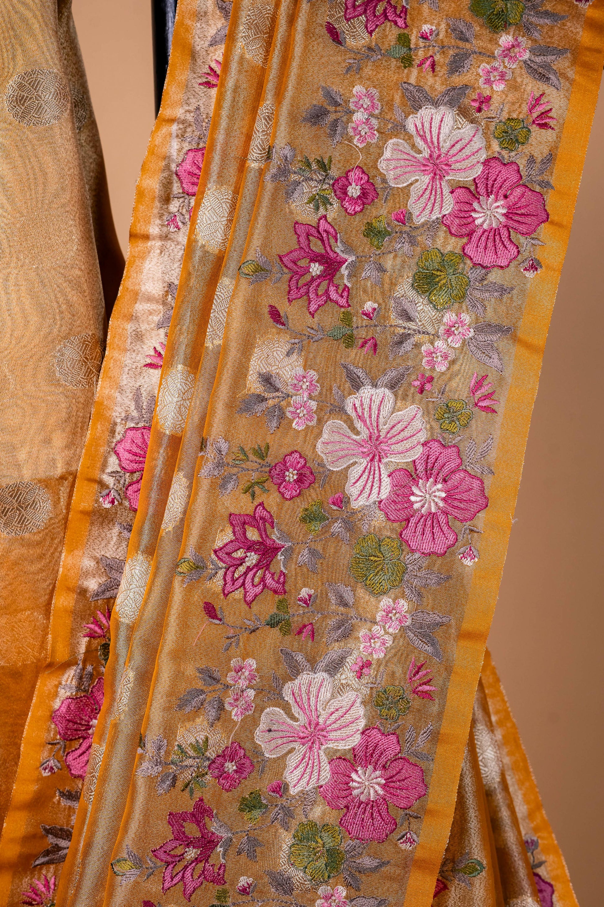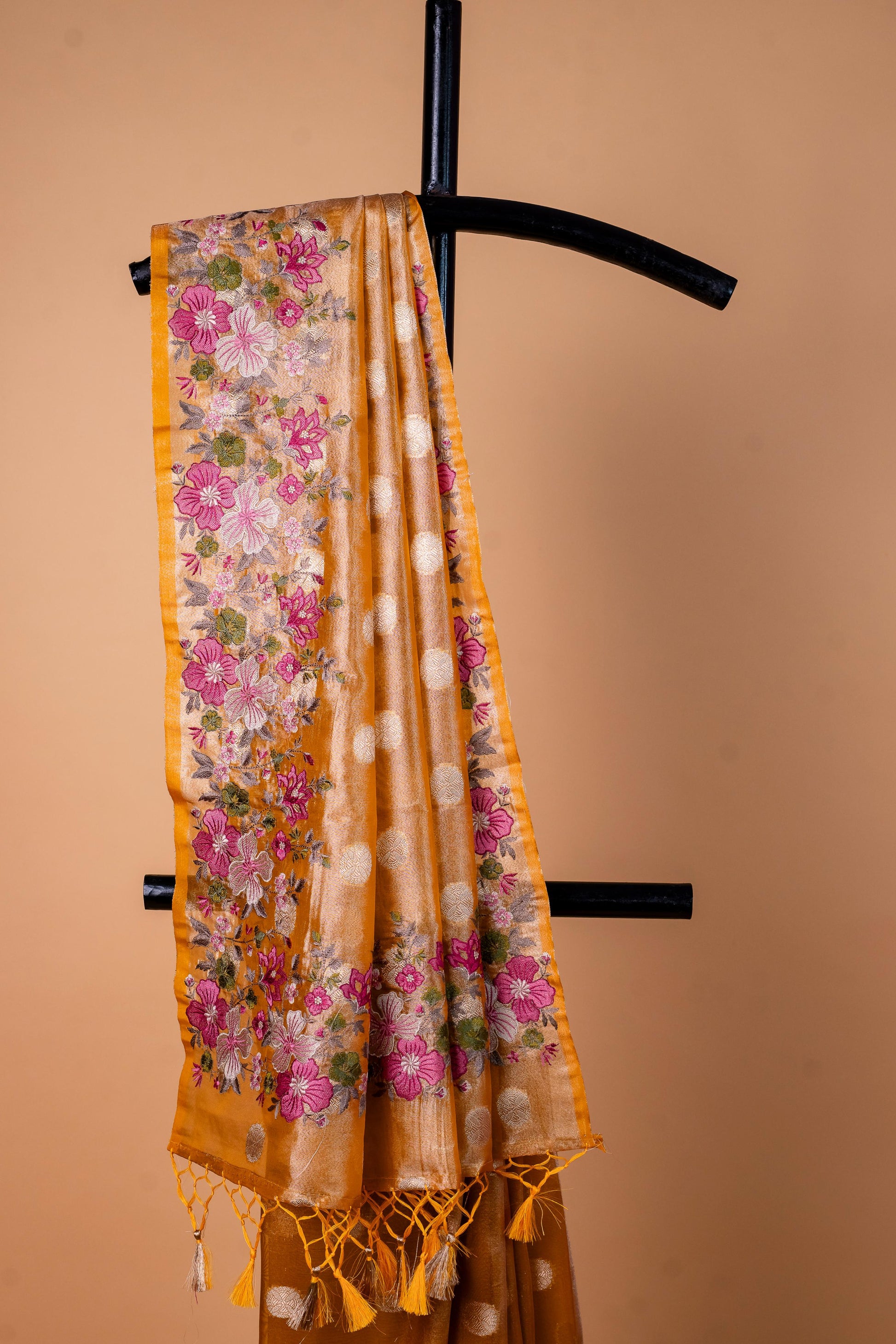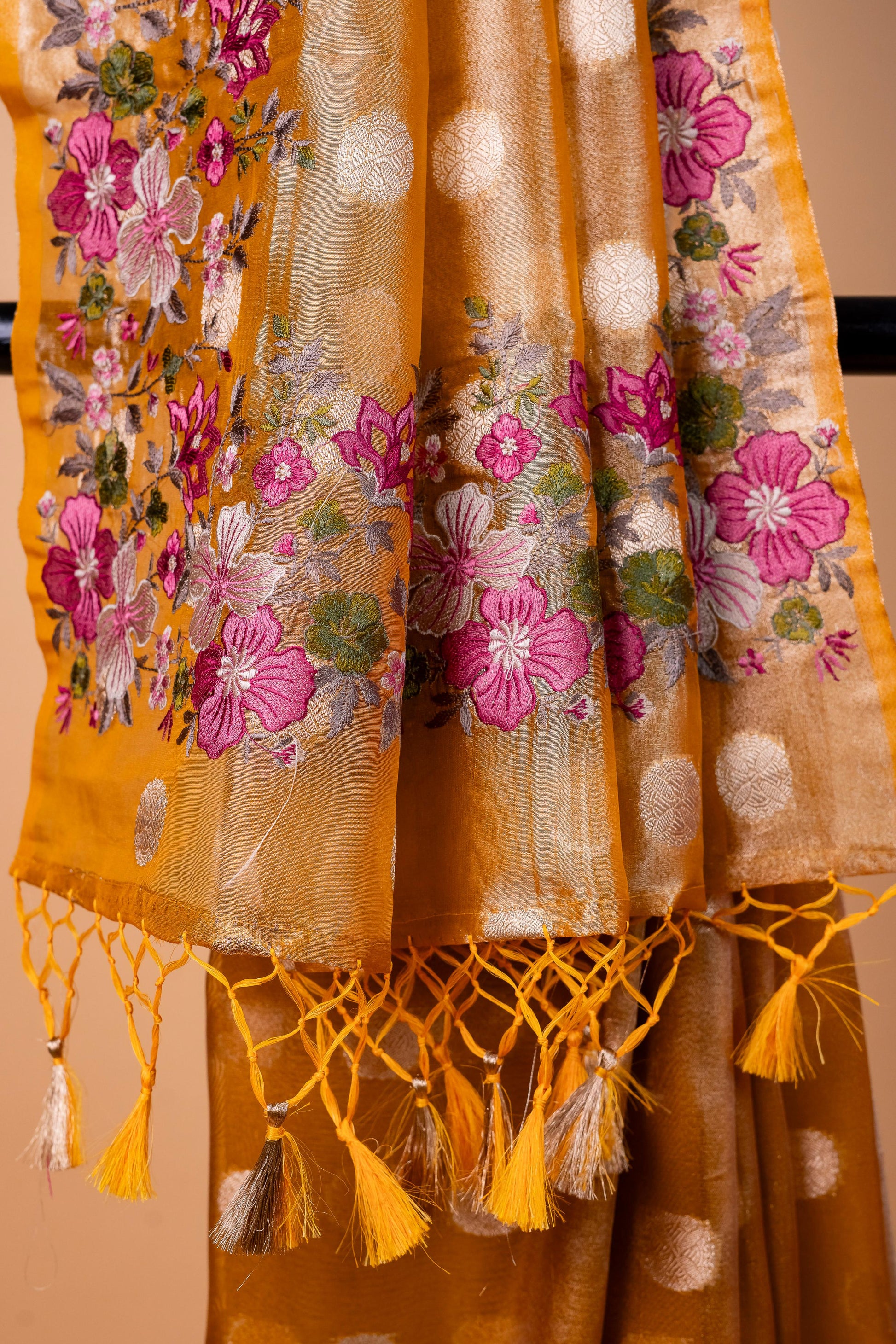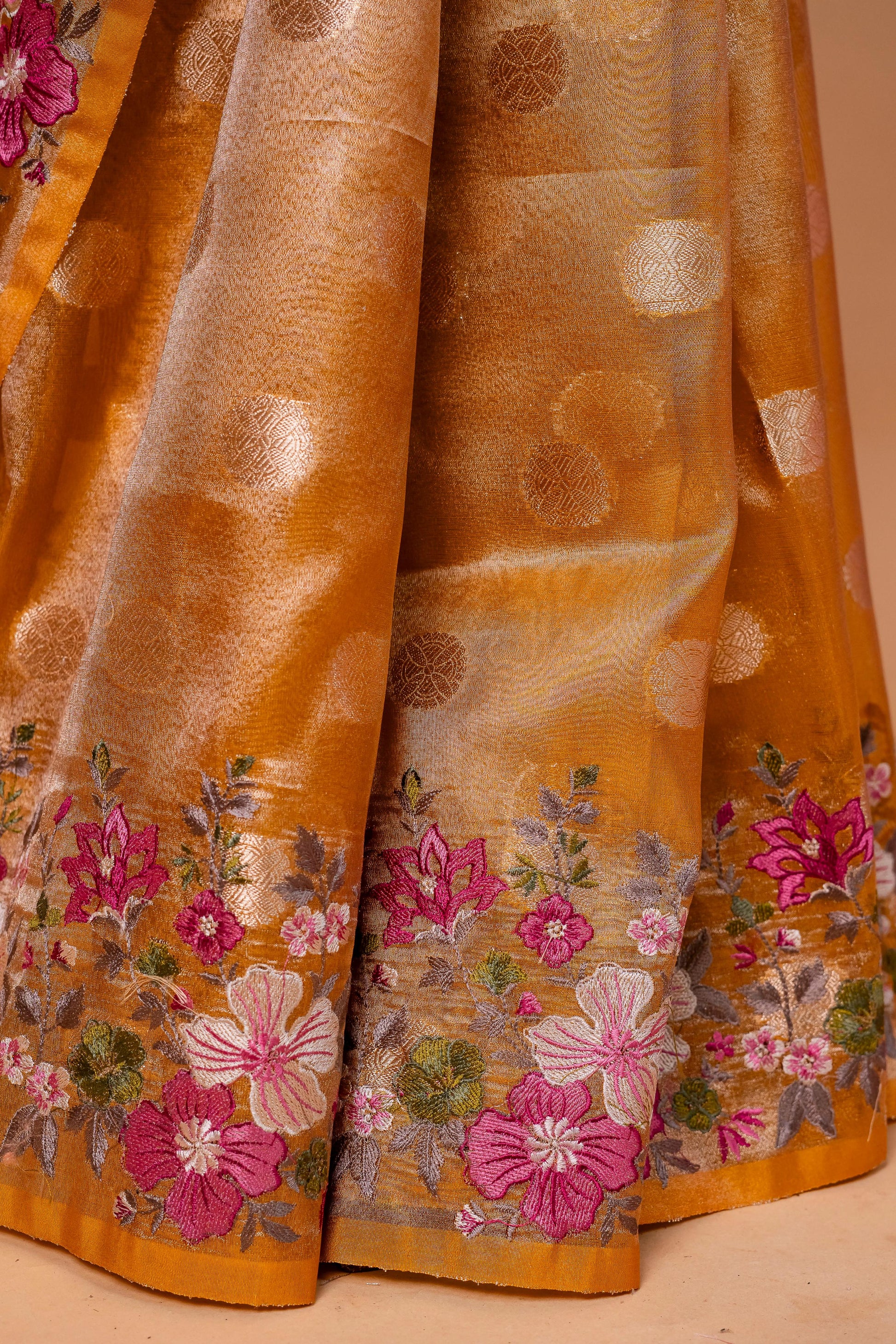 Mustard Tissue Designer Embroidery Premium Banarasi Saree