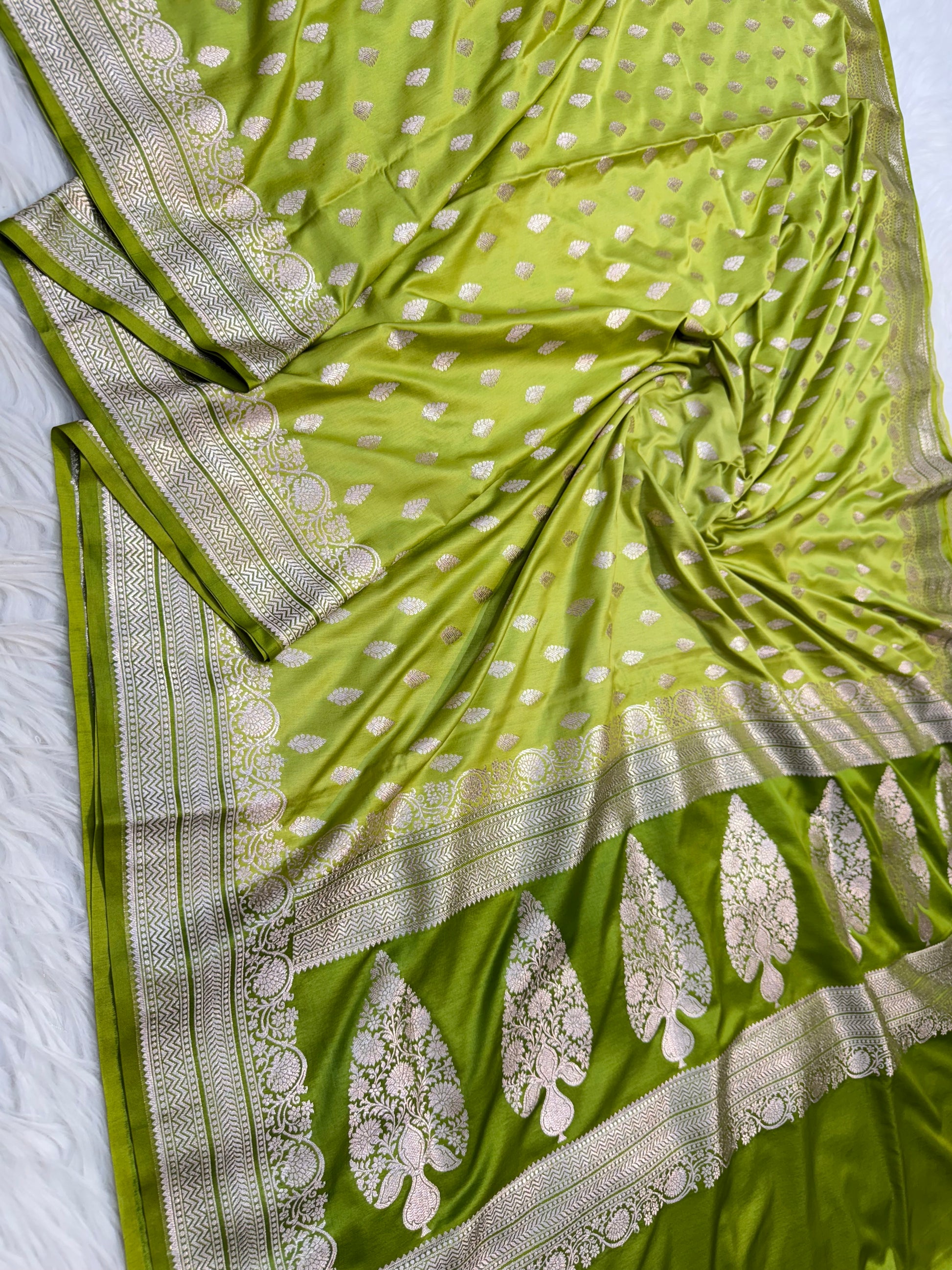 Pista green & mehendi shade premium mashru katan Banarasi saree