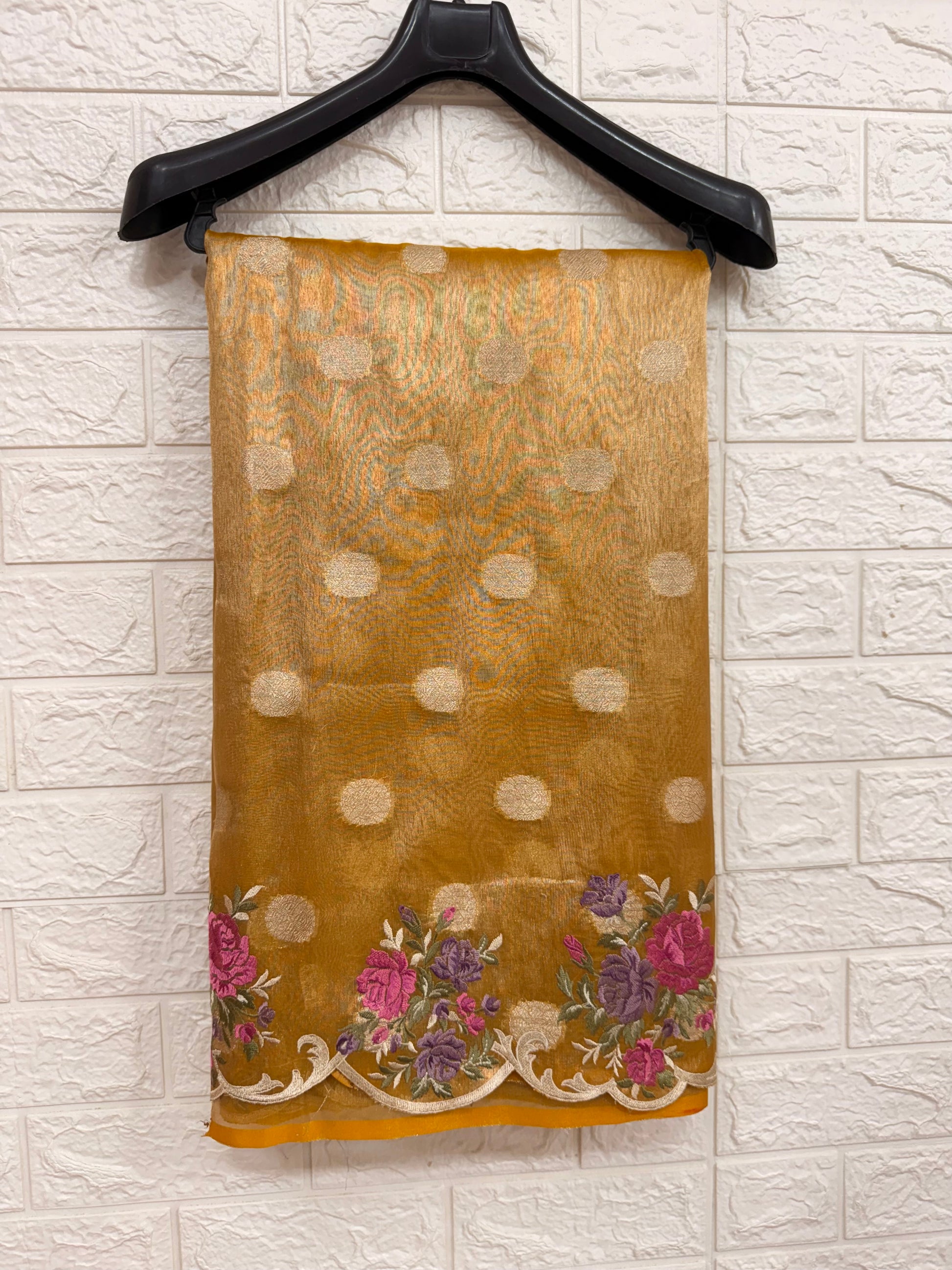 Gold tissue cutwork embroidery premium designer Banarasi saree
