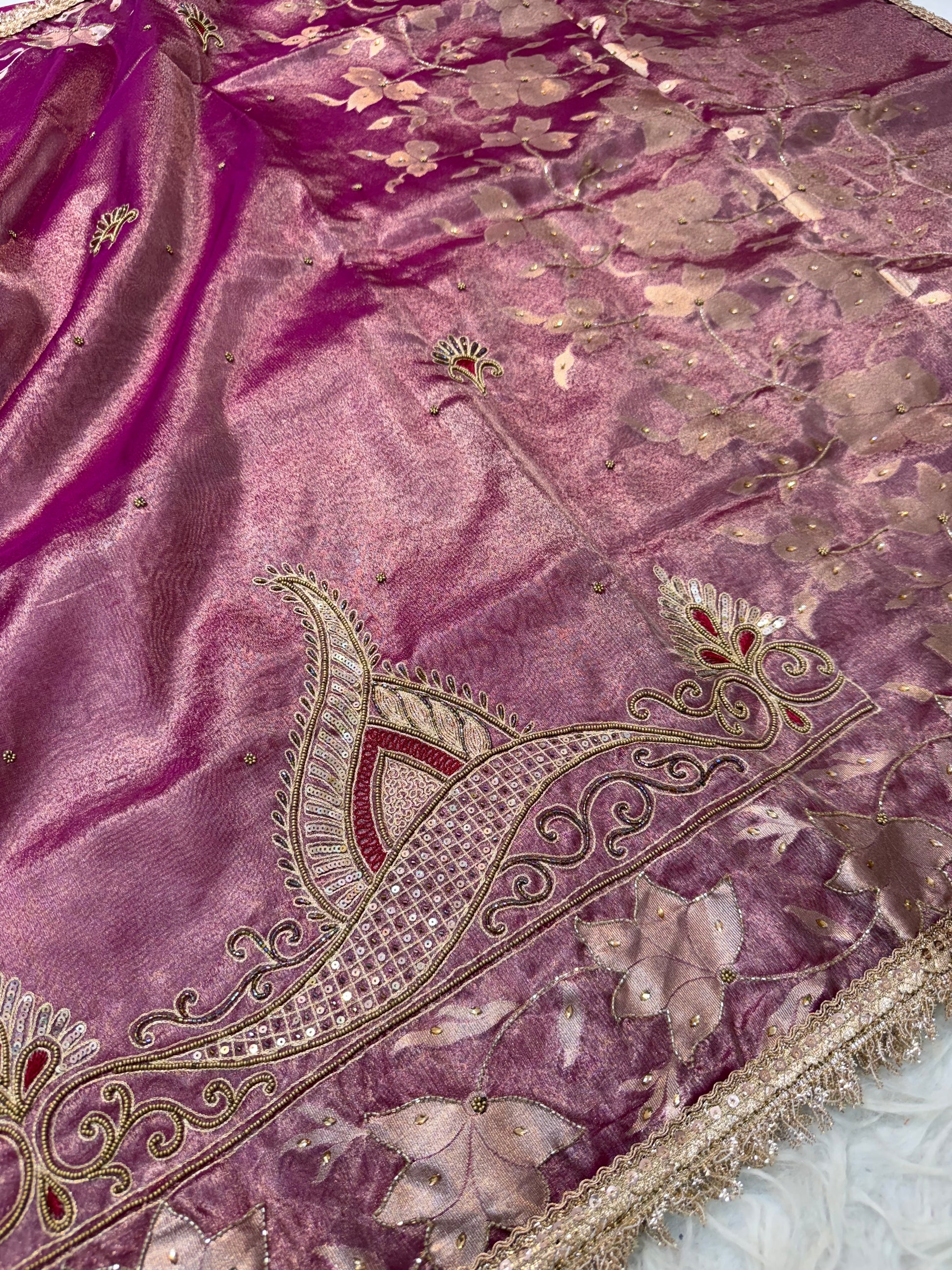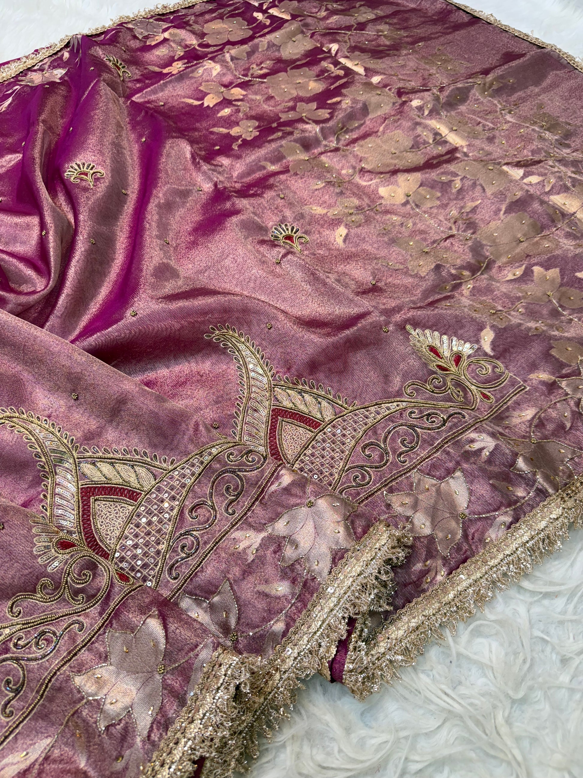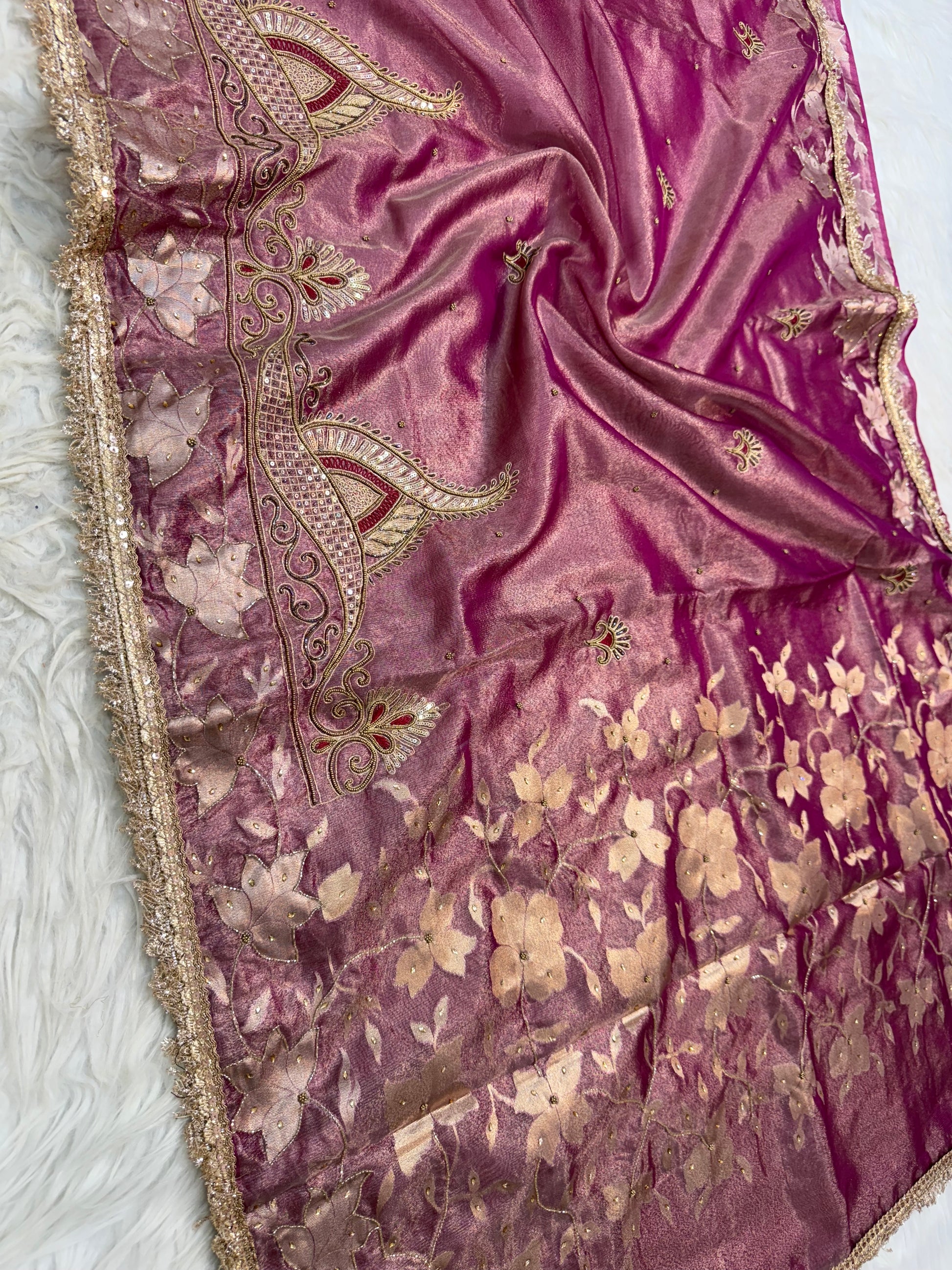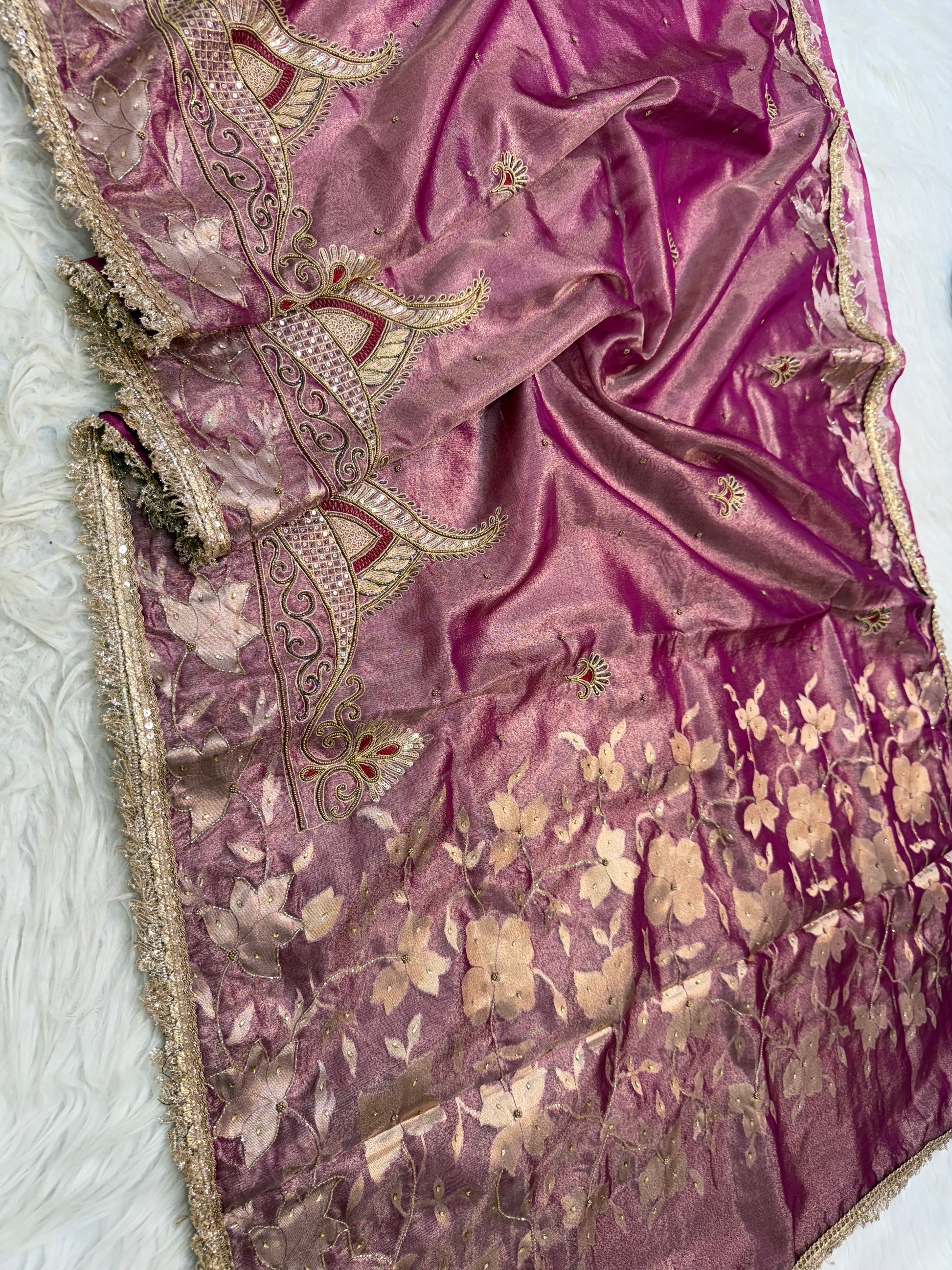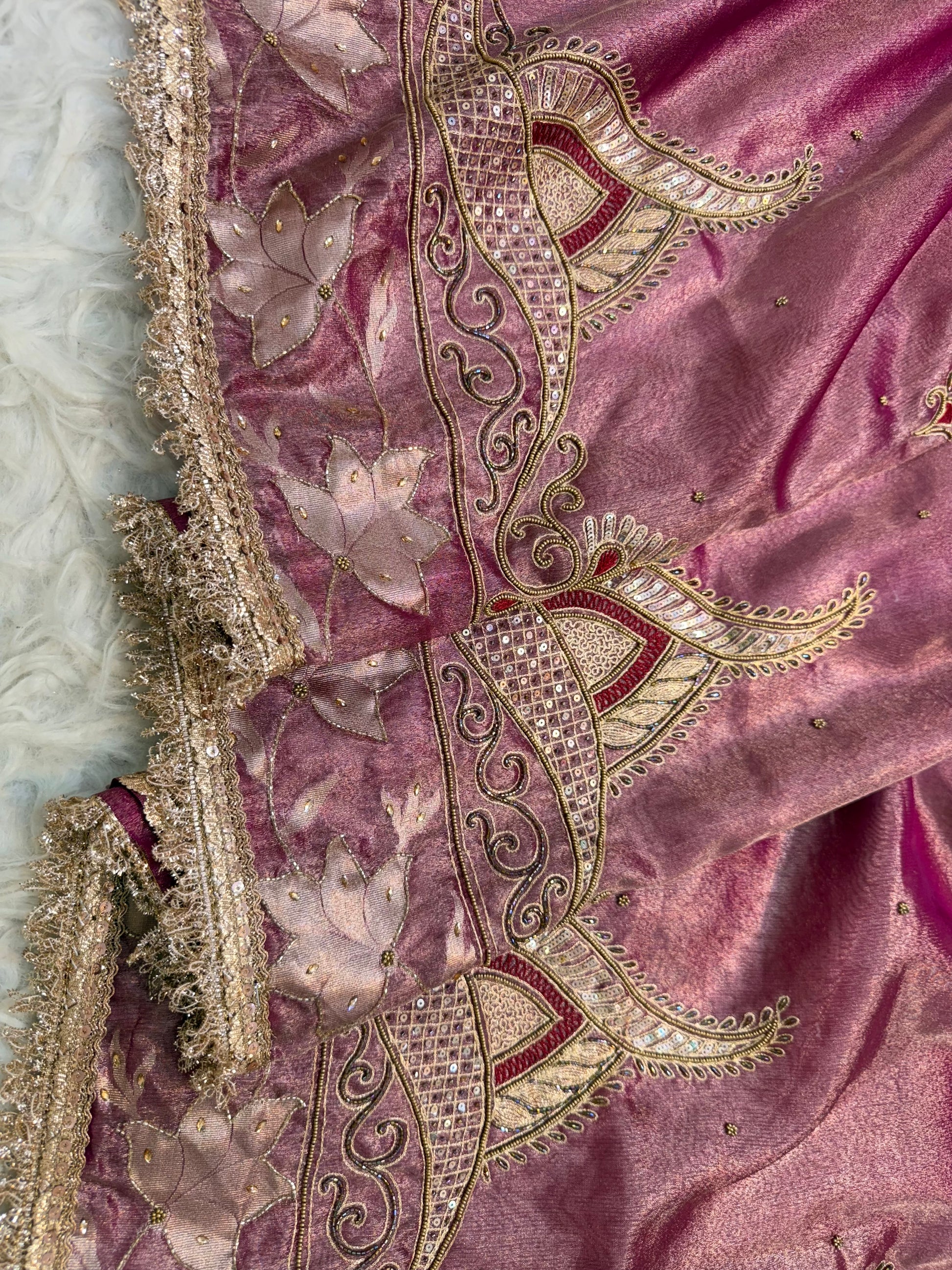 Royal pink shade tissue ari & zardosi work designer premium Banarasi saree