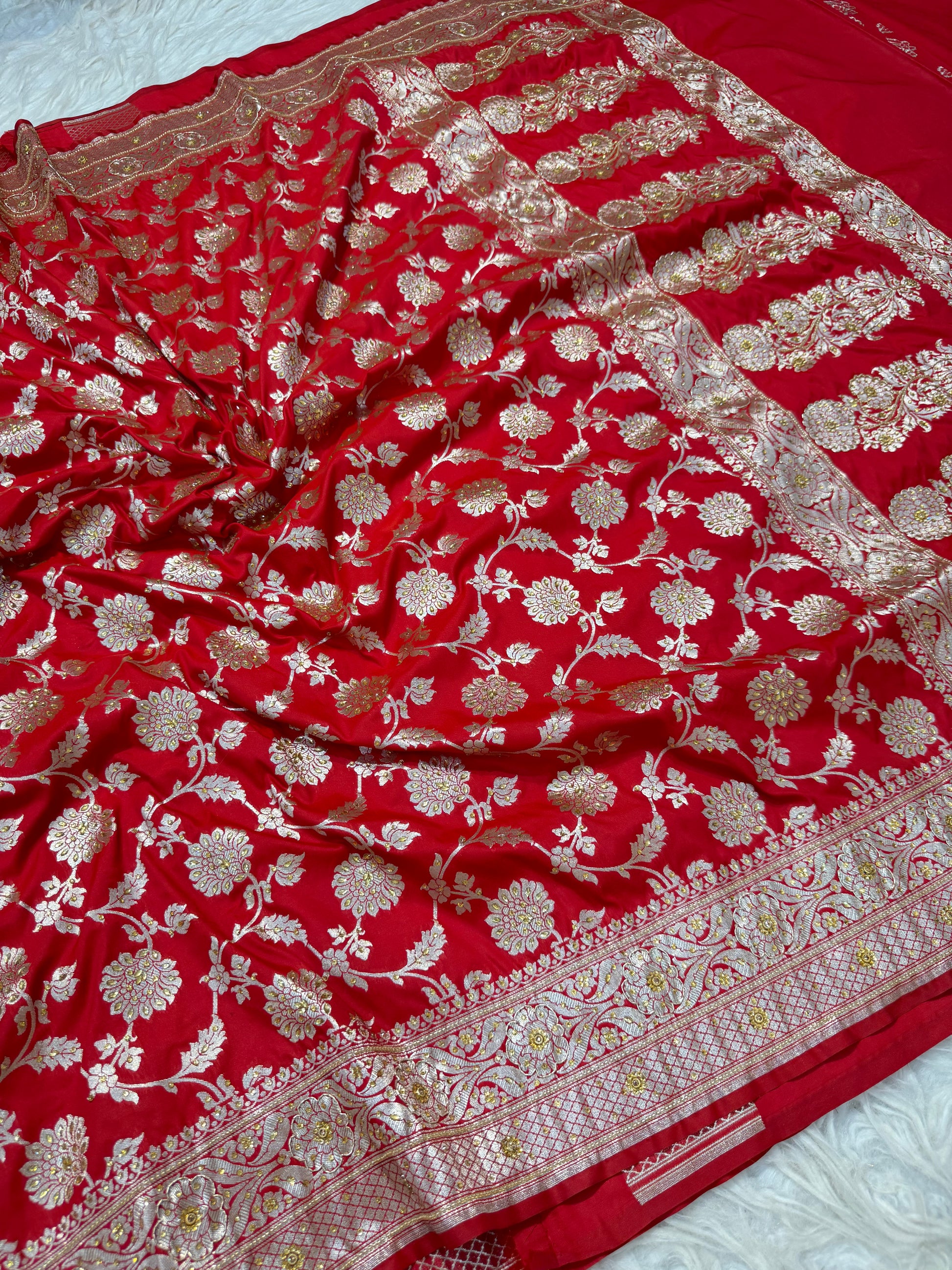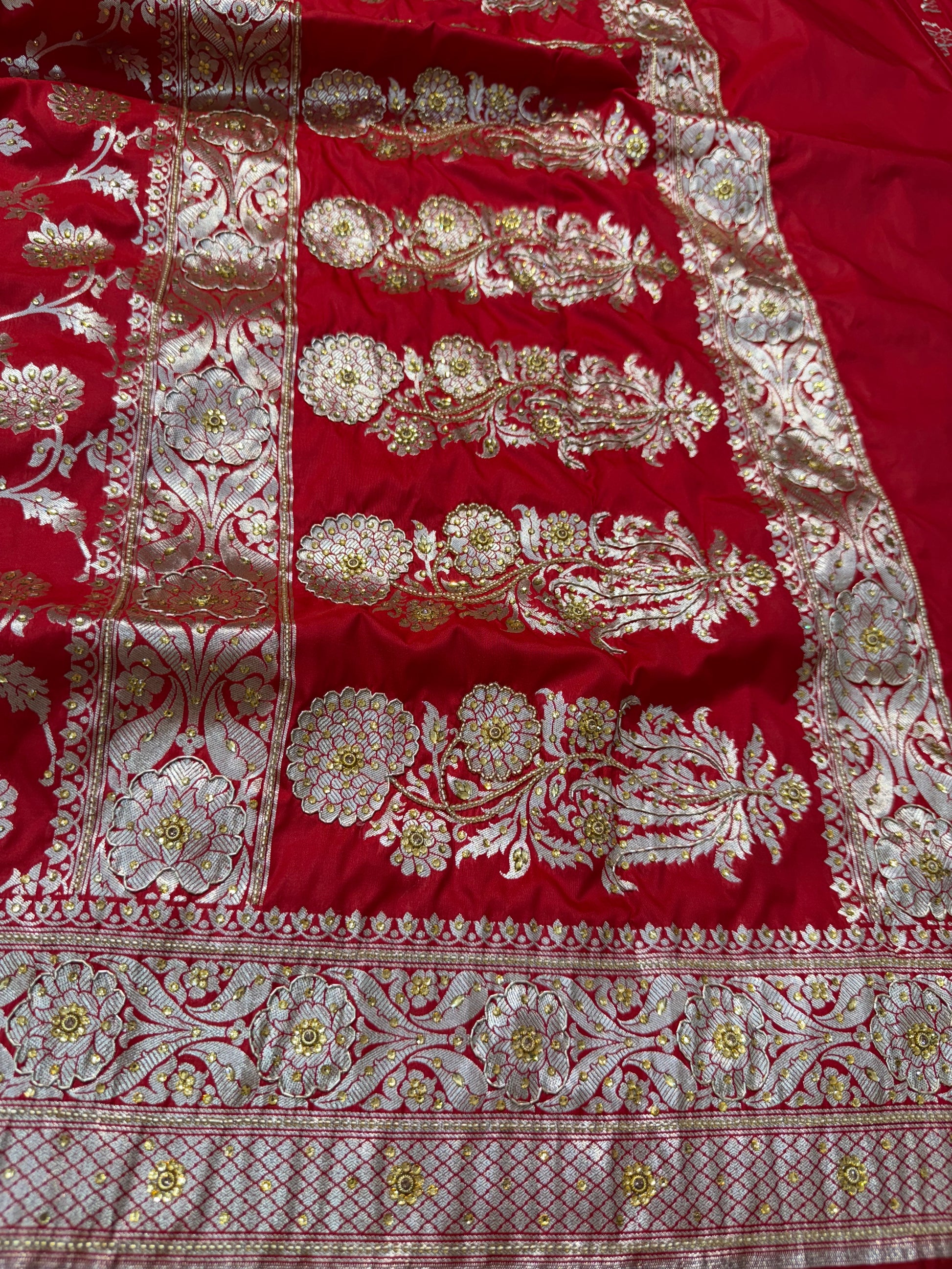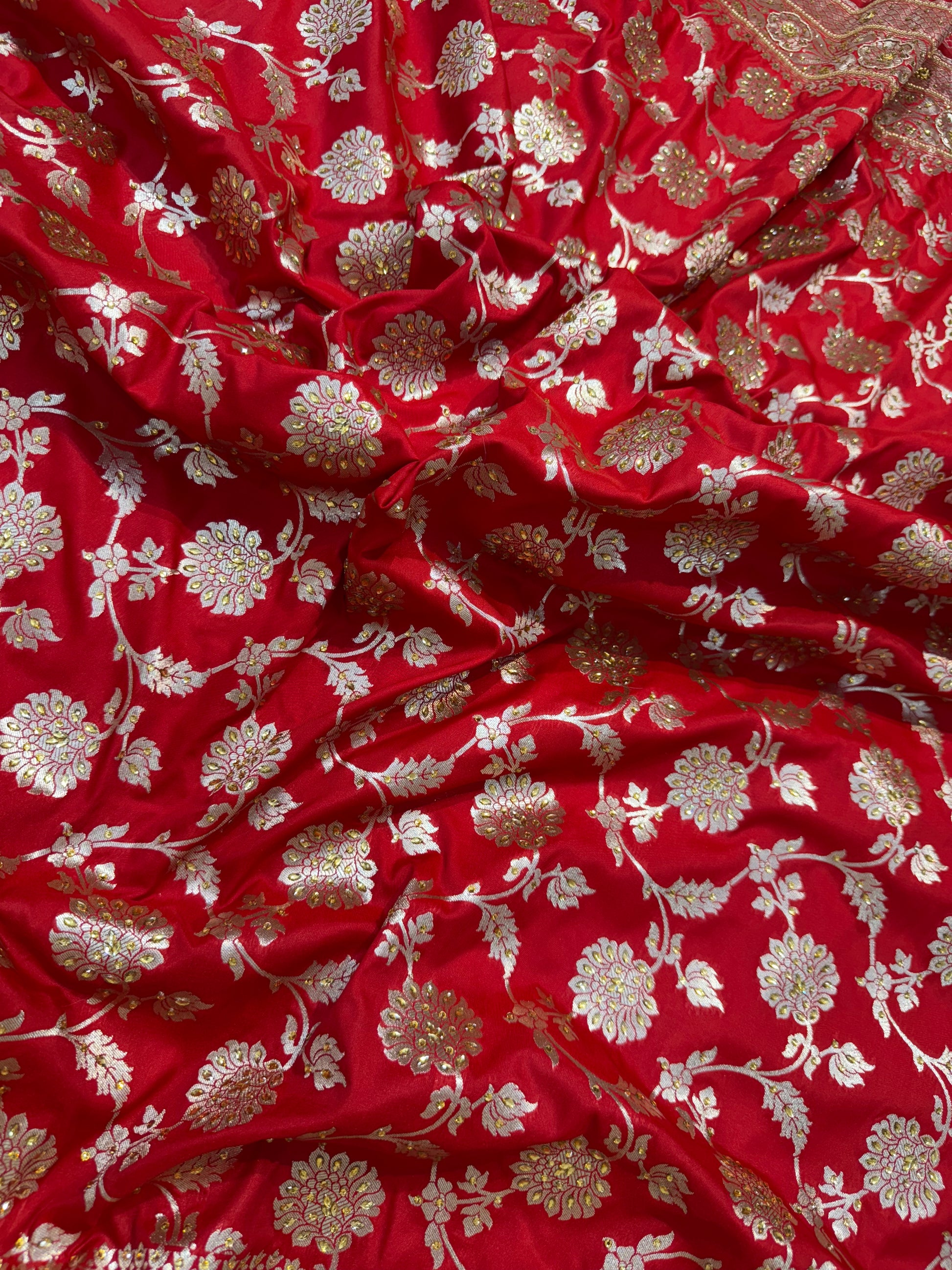 Red wedding Satin katan stone work premium Banarasi silk saree