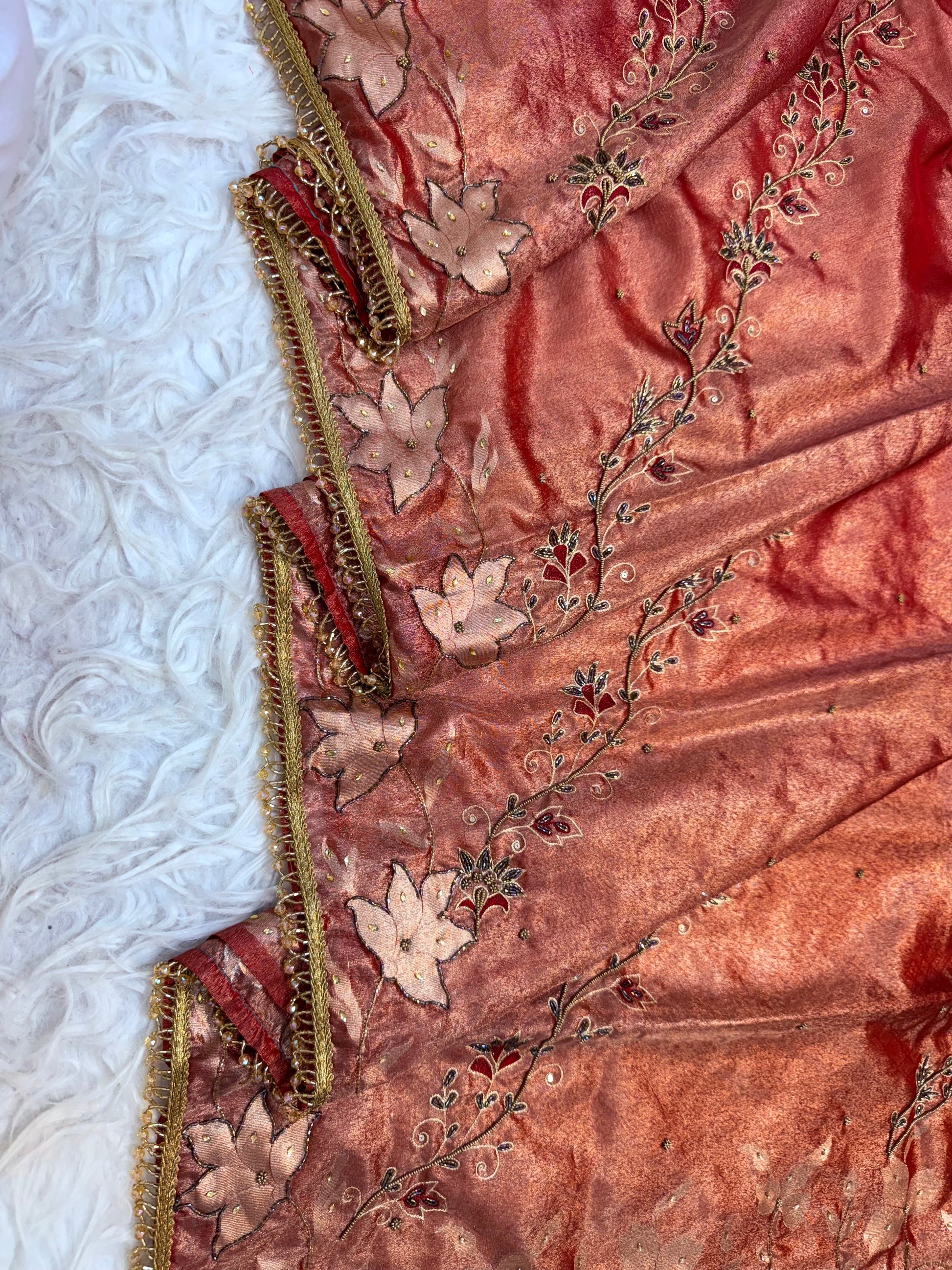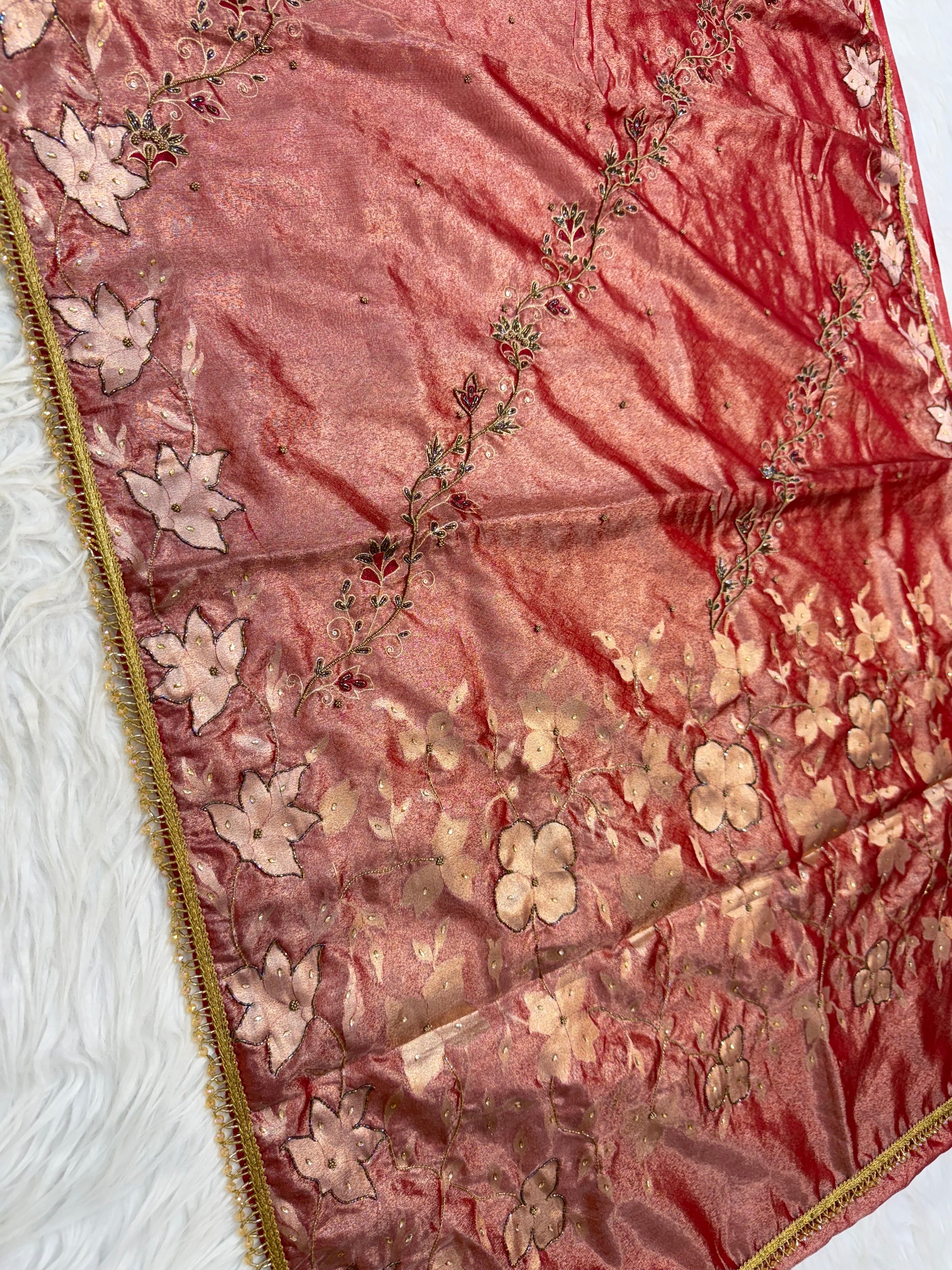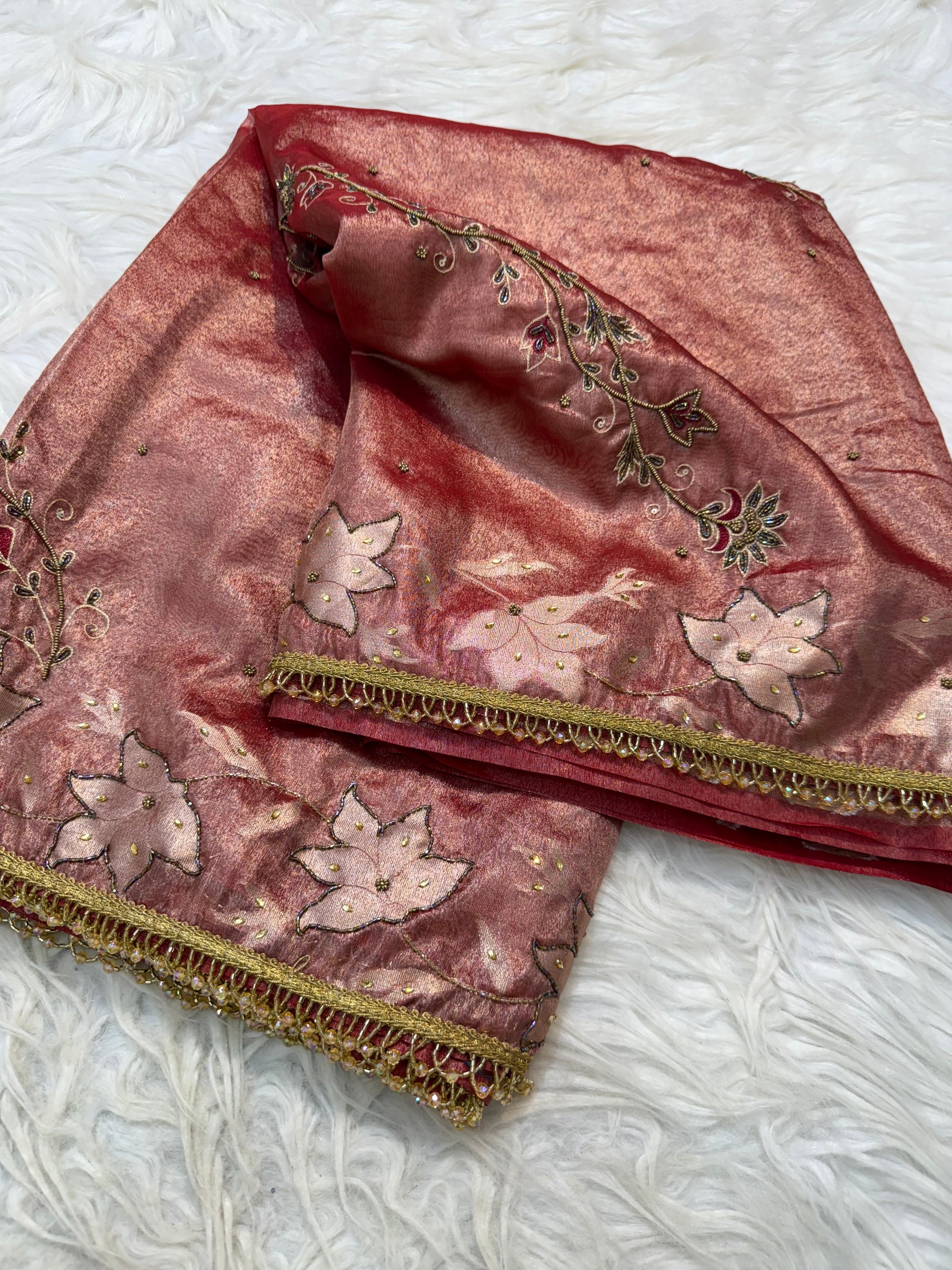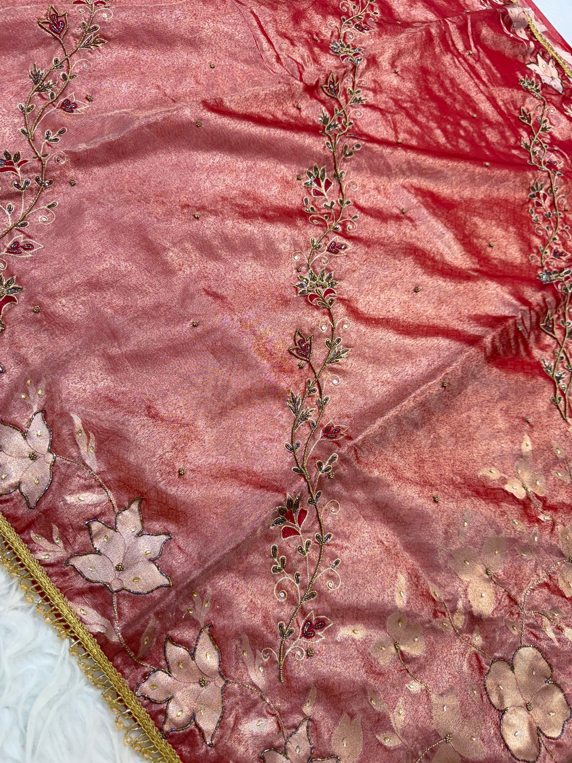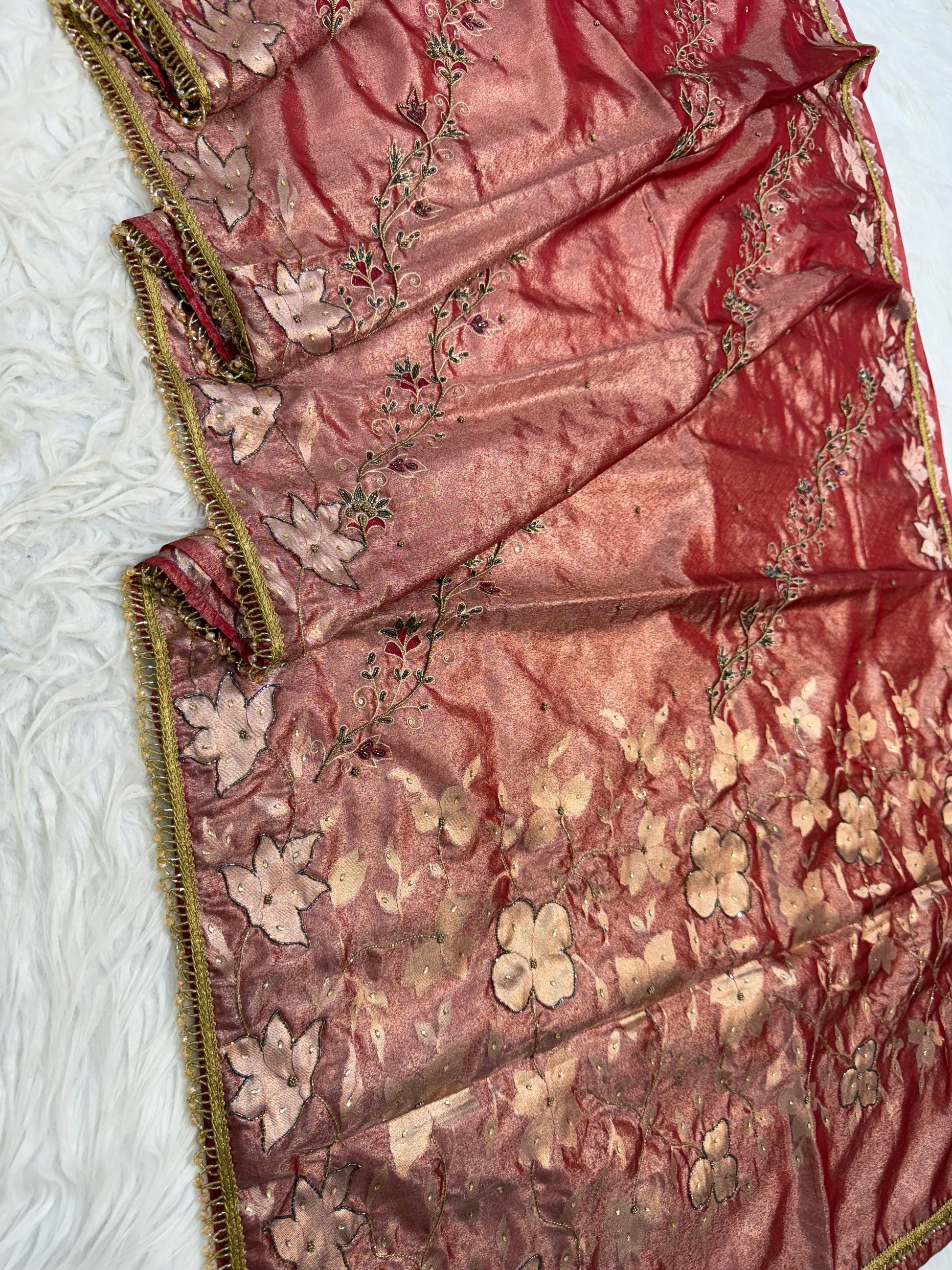 Red shade tissue ari & zardosi work designer premium Banarasi saree
