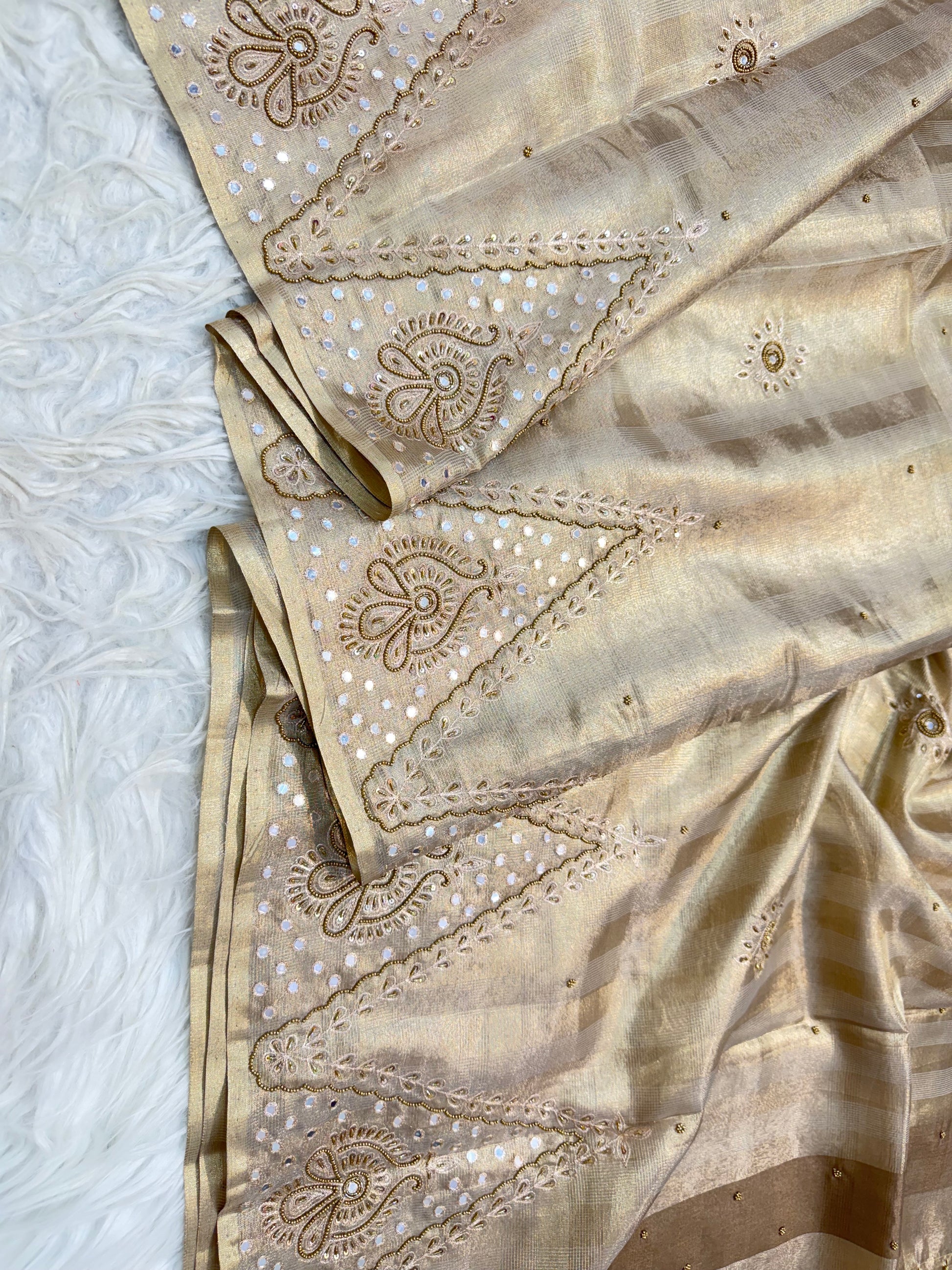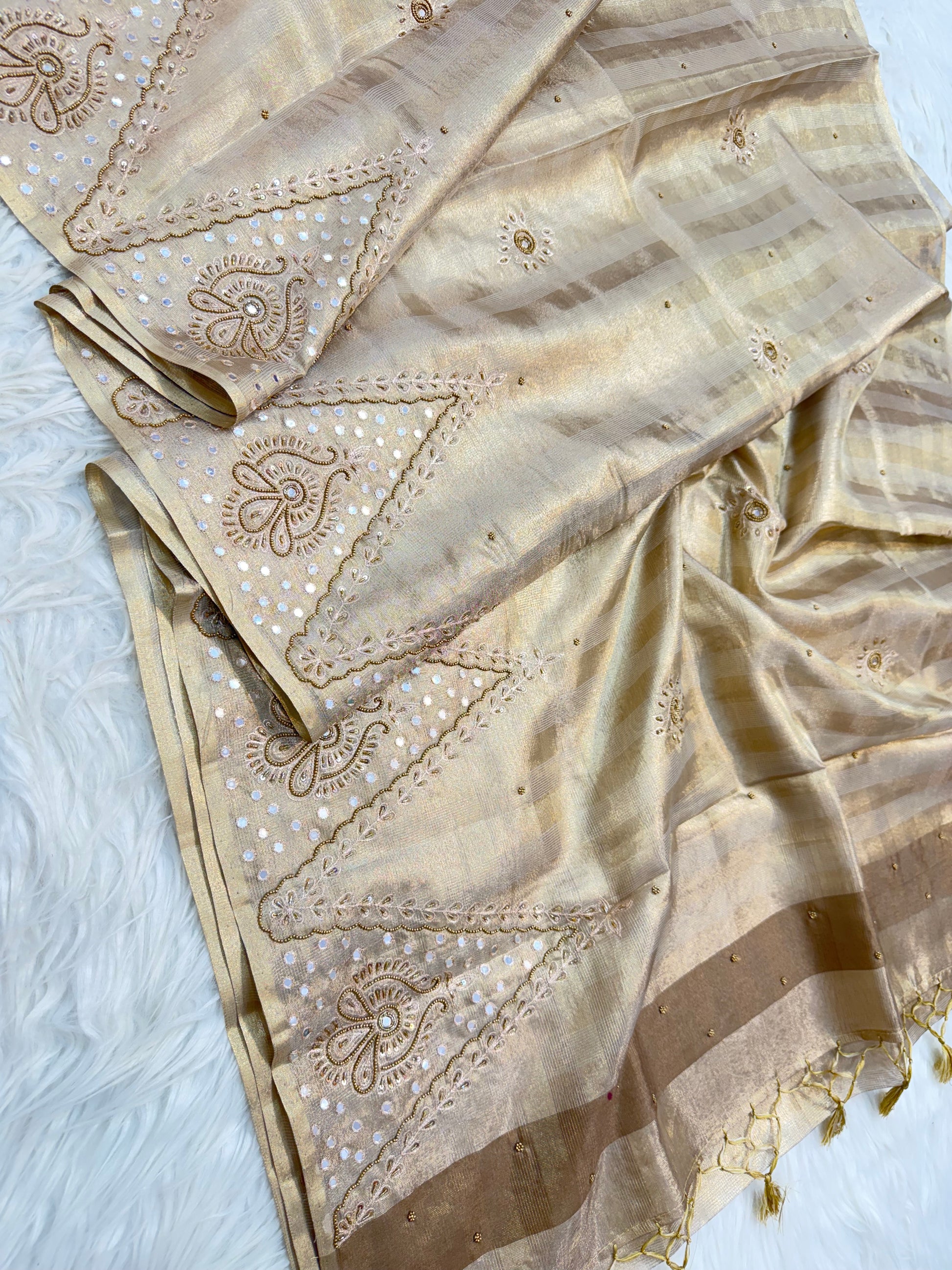 Beige shade tissue kota zardosi work premium Banarasi saree