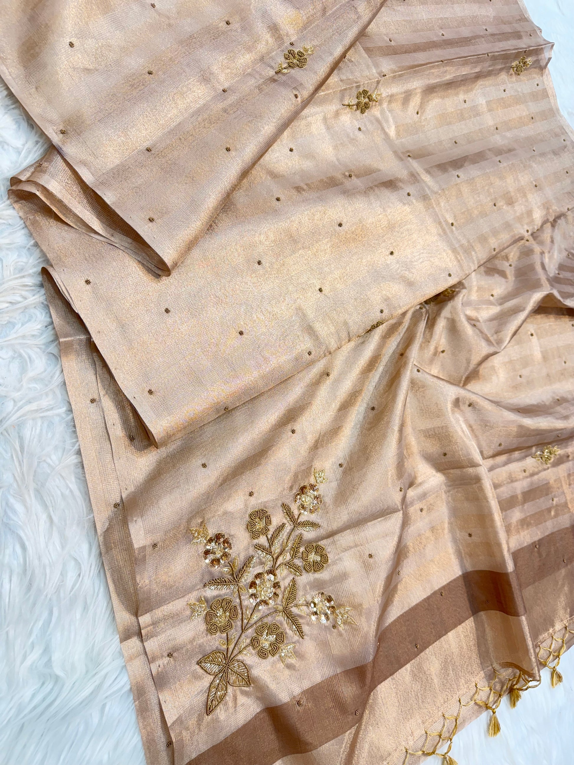 Beige shade tissue kota zardosi work premium Banarasi saree