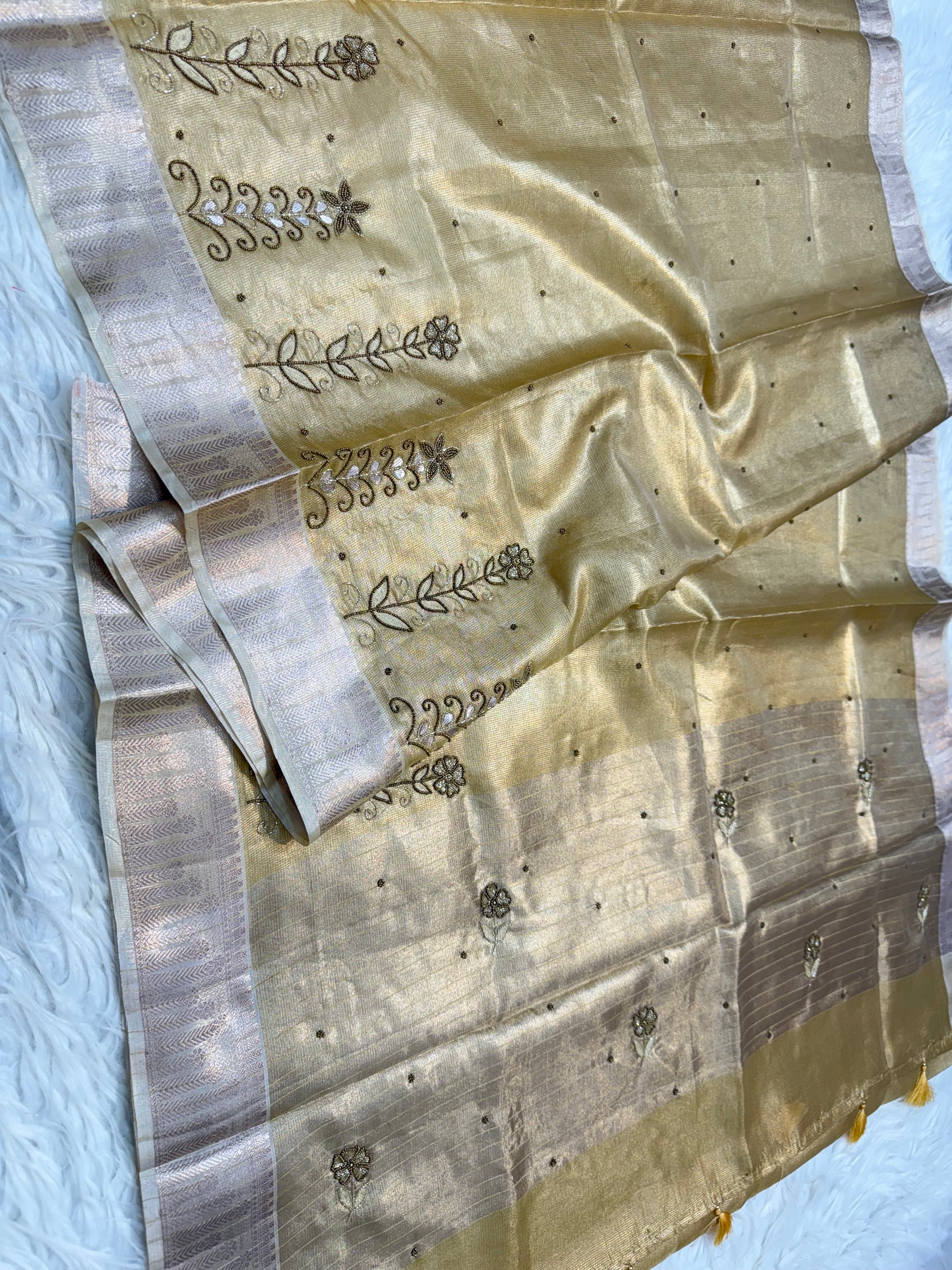 gold shade tissue kota zardosi work Banarasi saree