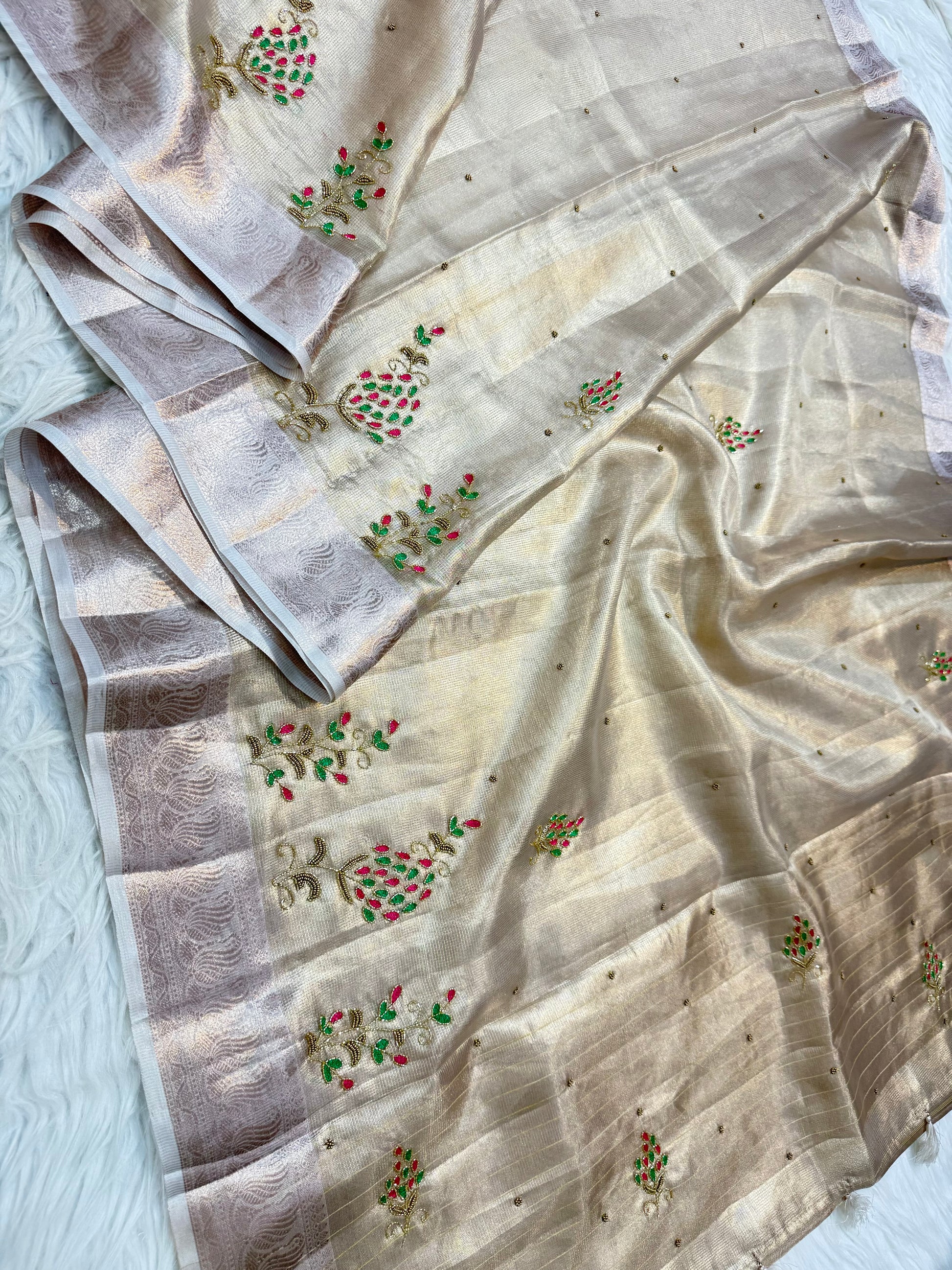 Tissue Kota Handwork Banarasi Saree by Zahera Silk Banaras.