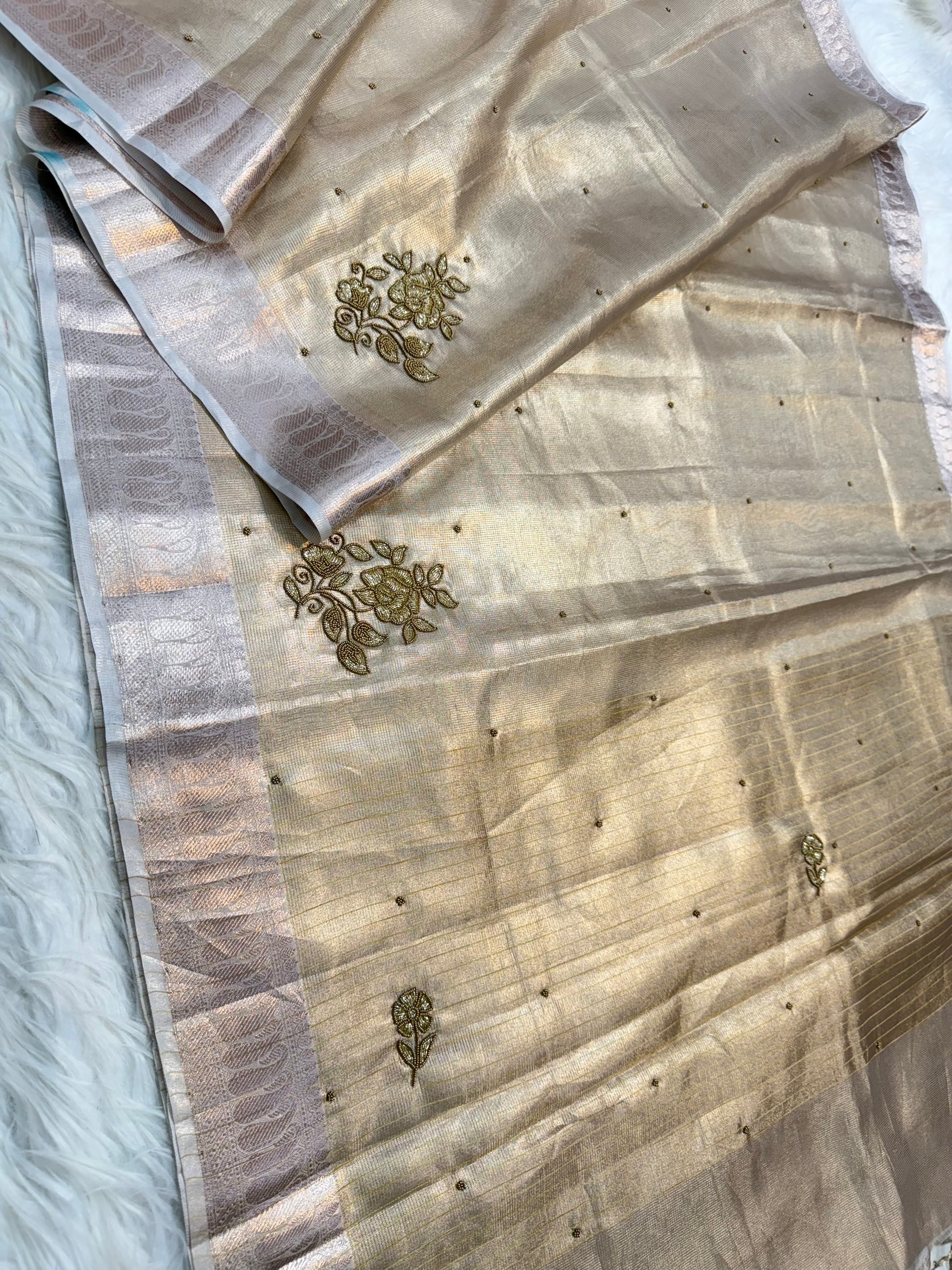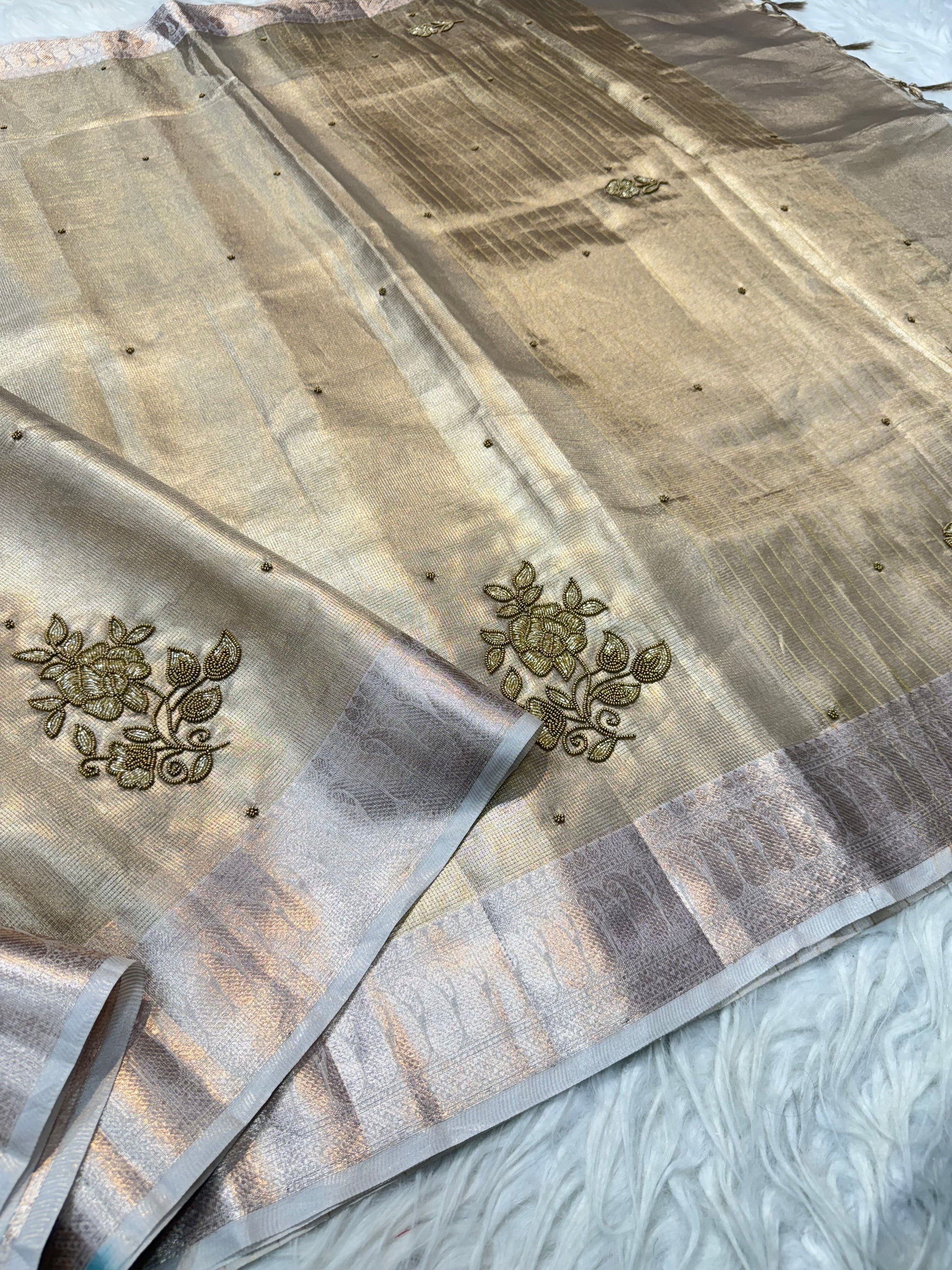 Beige shade tissue kota zardosi work Banarasi sareeZSB318