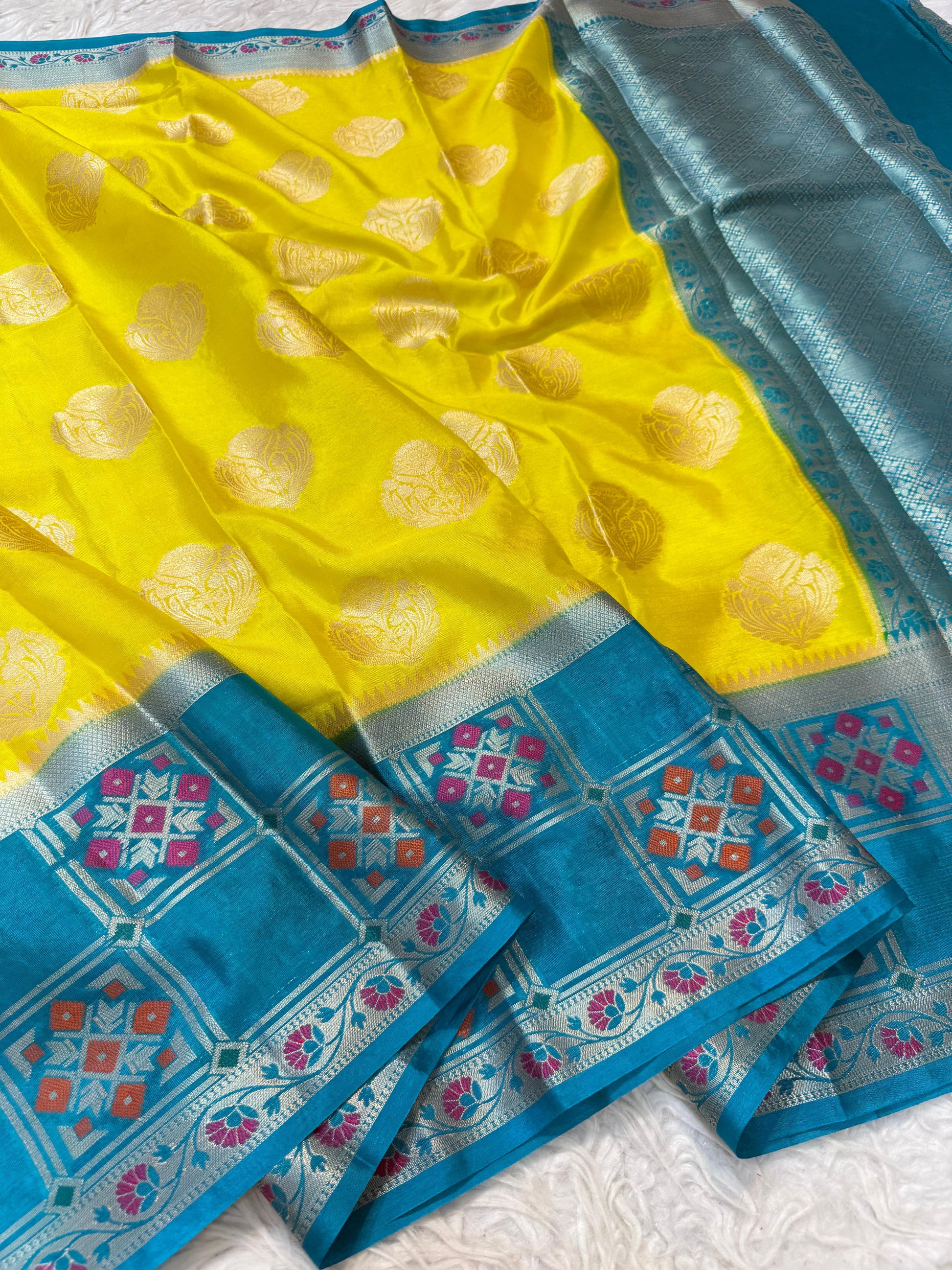 Powde Blue & Yellow Warm Silk Skirt Border Zari Boota Saree